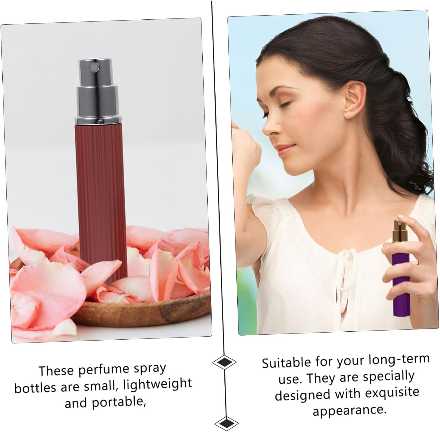 -Size: 11.70X1.70X1.70cm/4.60X0.67X0.67in Perfume Spray Bottles.