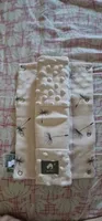 Great item, the fabric is very soft, quality and pleasant, made of cotton. The buttons are well protected to not harm the baby. Matches perfectly with the super cool seat blanket.