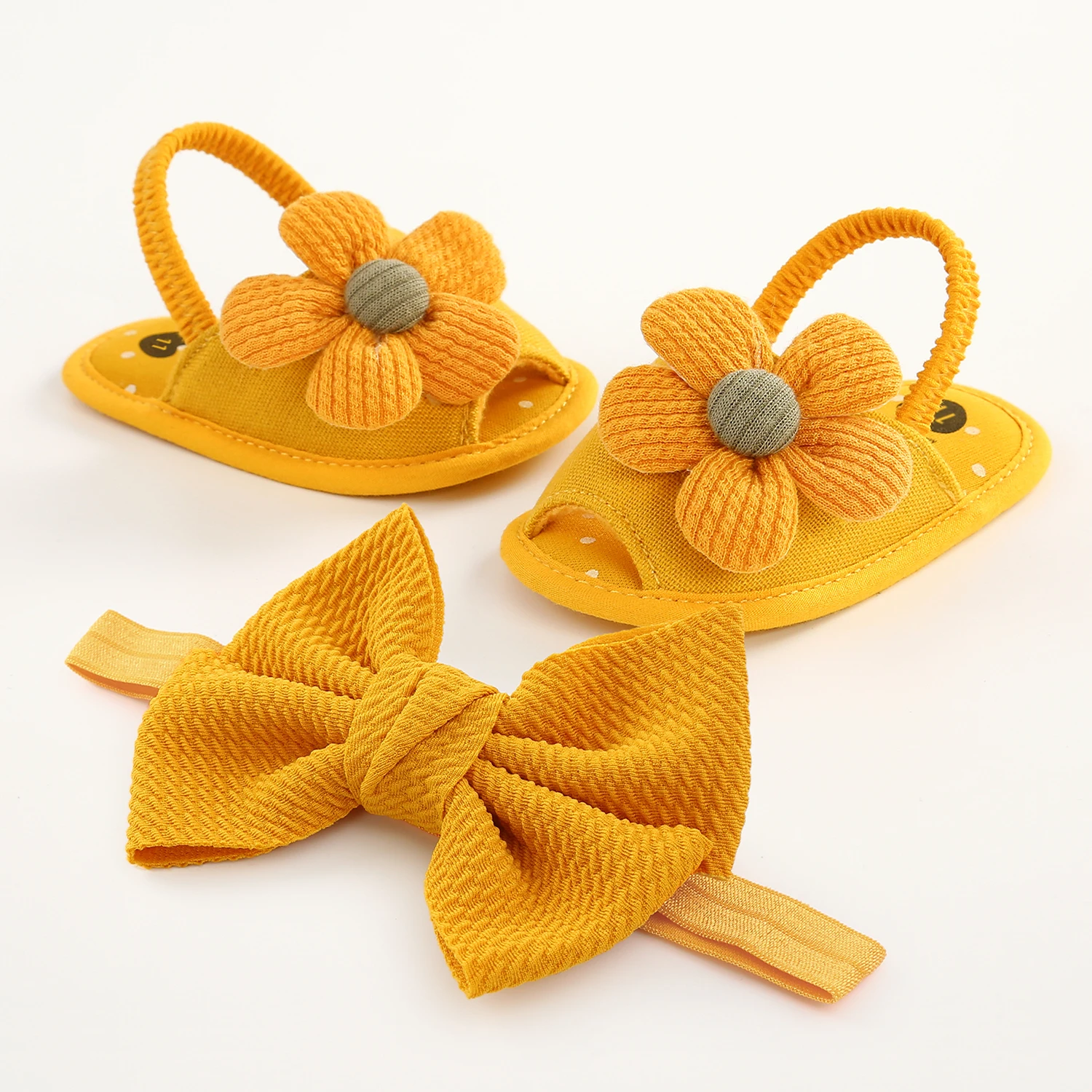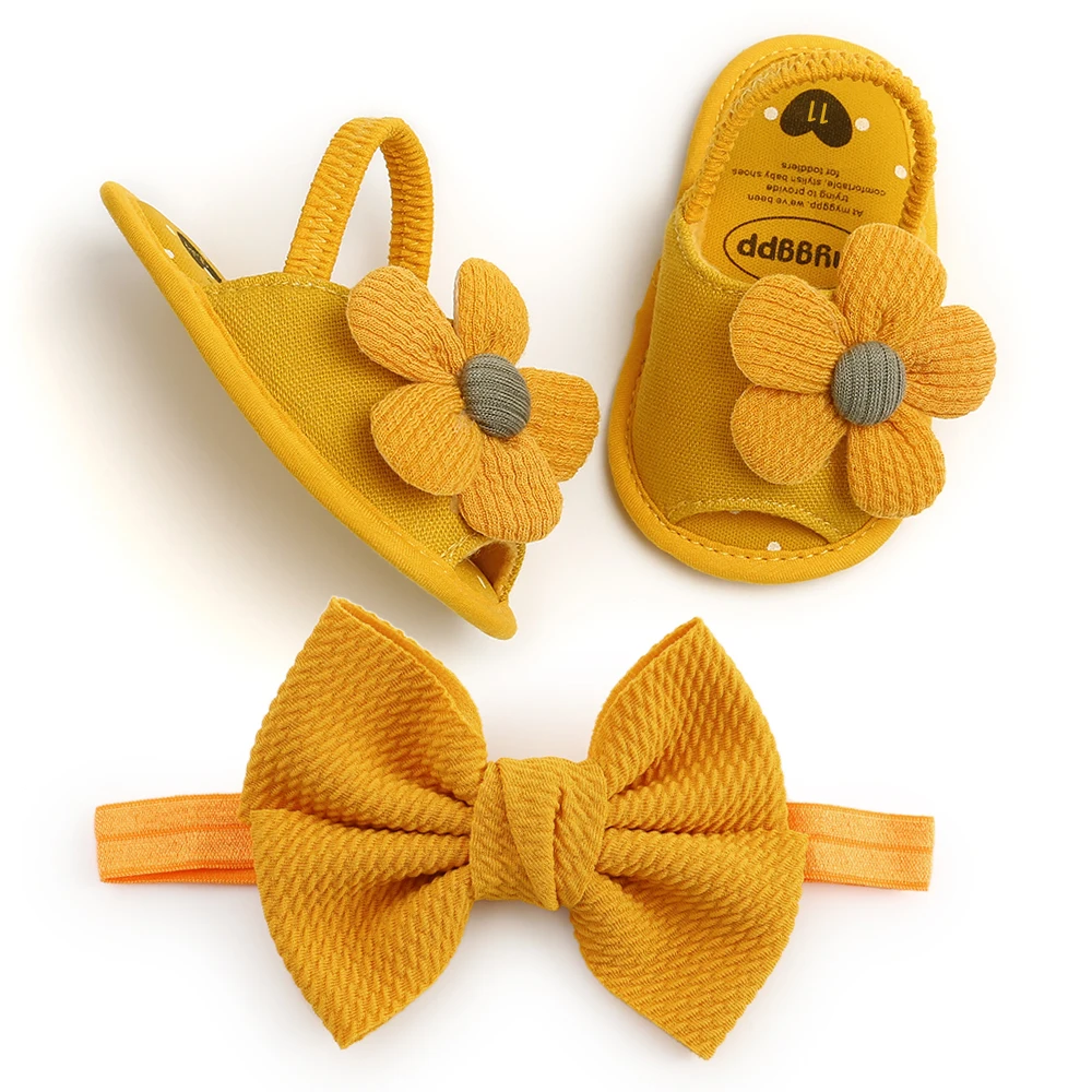 2pcs/Set Infant Baby Girls Summer Sandals Newborn Toddler First Walker Crib Dress Shoes with Free Headband
