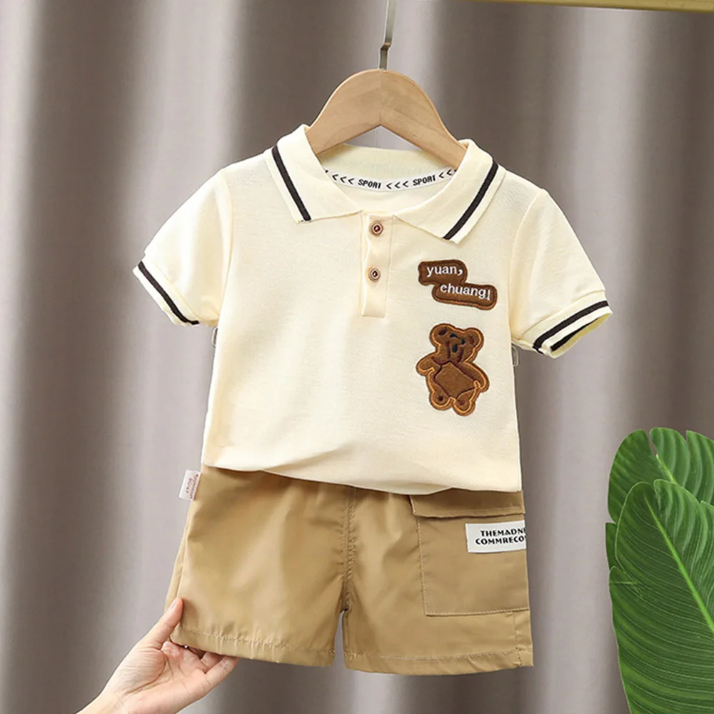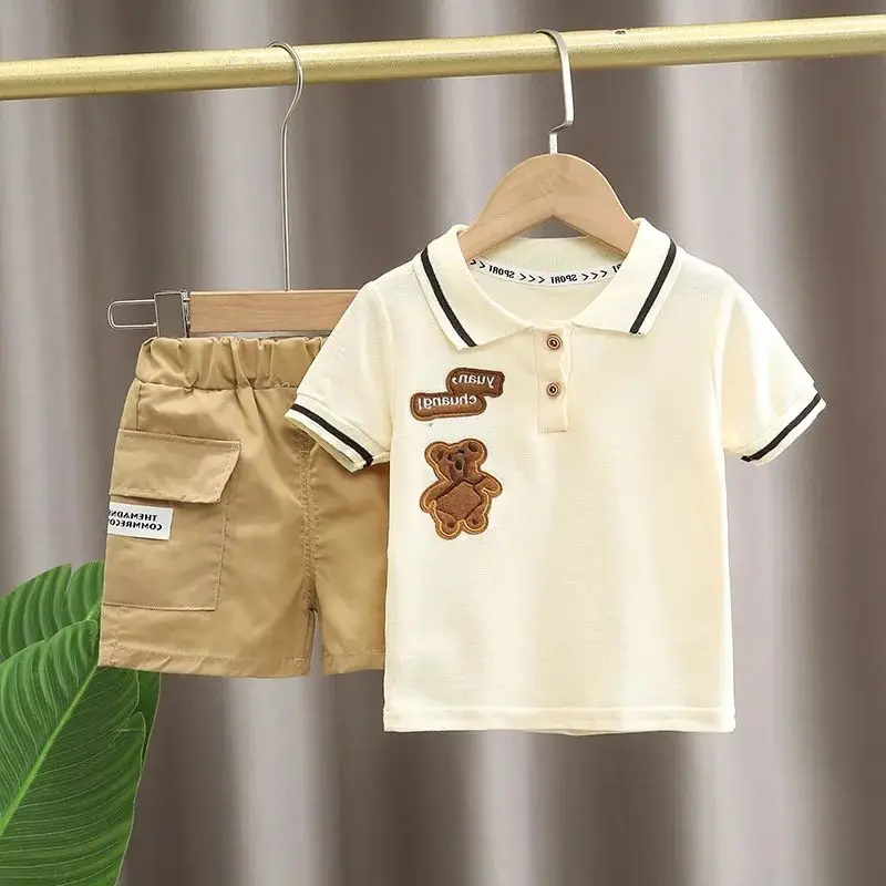 2PCS/Set Summer Boys POLO Top and Bottom Suits Baby Boys Clothing Set Fashion Bears Casual Boys Tracksuit Outfits