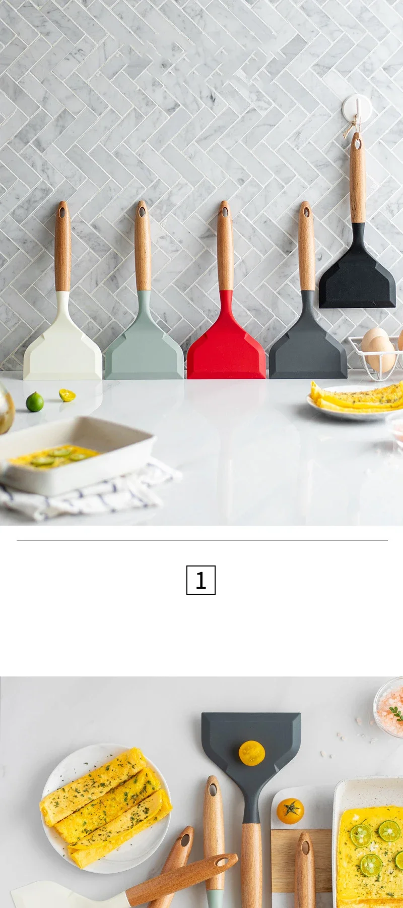 6 reviews for 2Pcs Silicone Spatula Wide Mouth Tamagoyaki Shovel Beef Non-Stick Wooden Handle Meat Egg Frying Cooking Tool Kitchen Gadgets