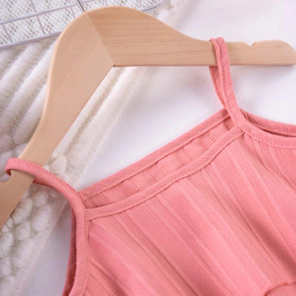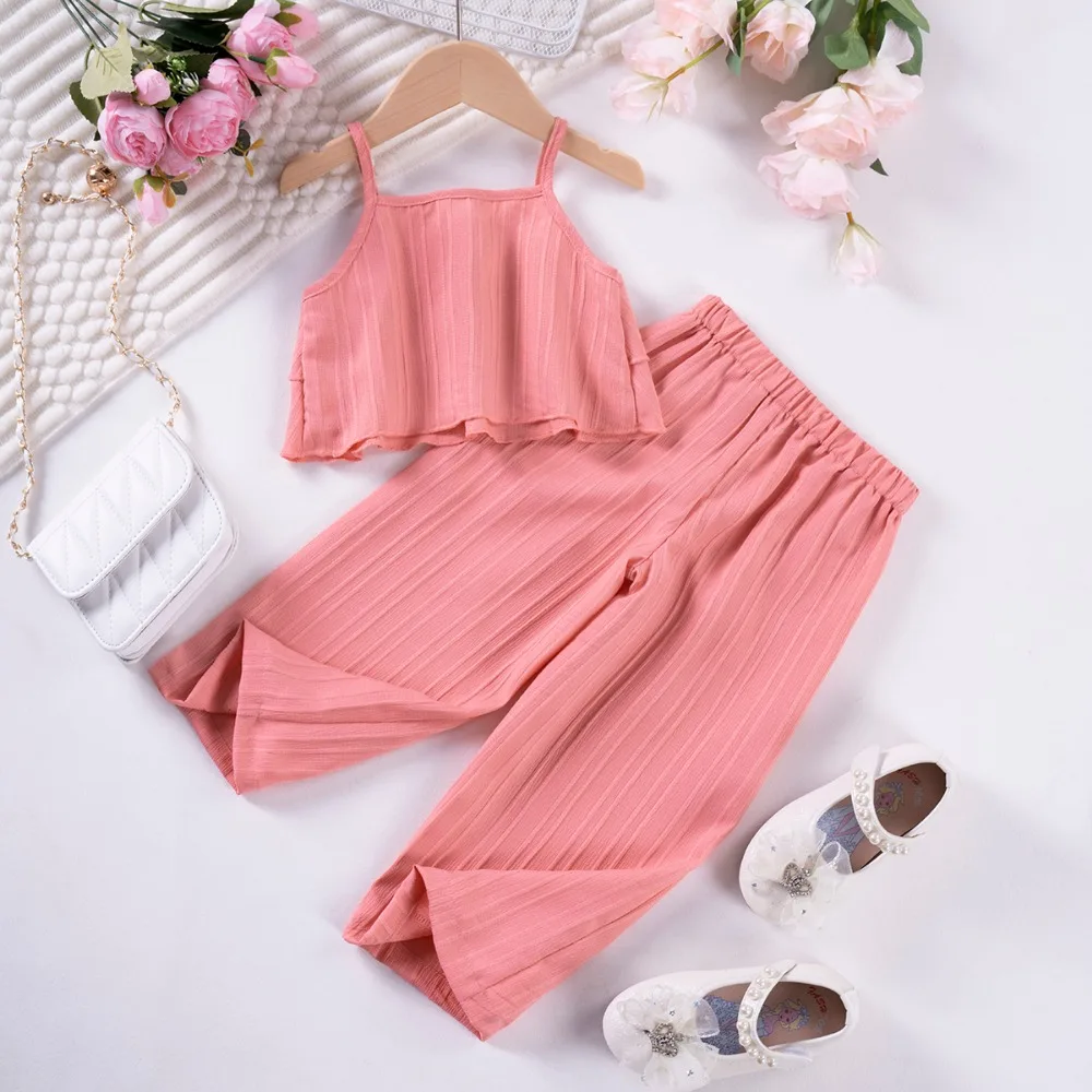 5 reviews for 2pcs Toddler Girl Summer New Solid Colour Suit Casual Sleeveless Ruffle Top + Wide Leg Trousers Suit Children’s Trend Clothing