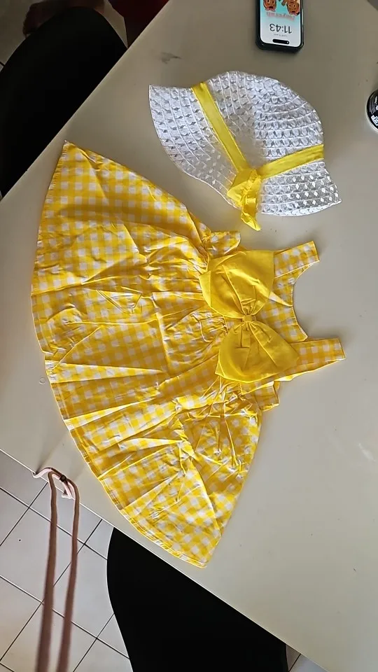 4 reviews for 2Piece Summer Toddler Girls Dresses Korean Cute Plaid Sleeveless Cotton Big Bow Yellow Dress+Sunhat Newborn Baby Clothes BC003