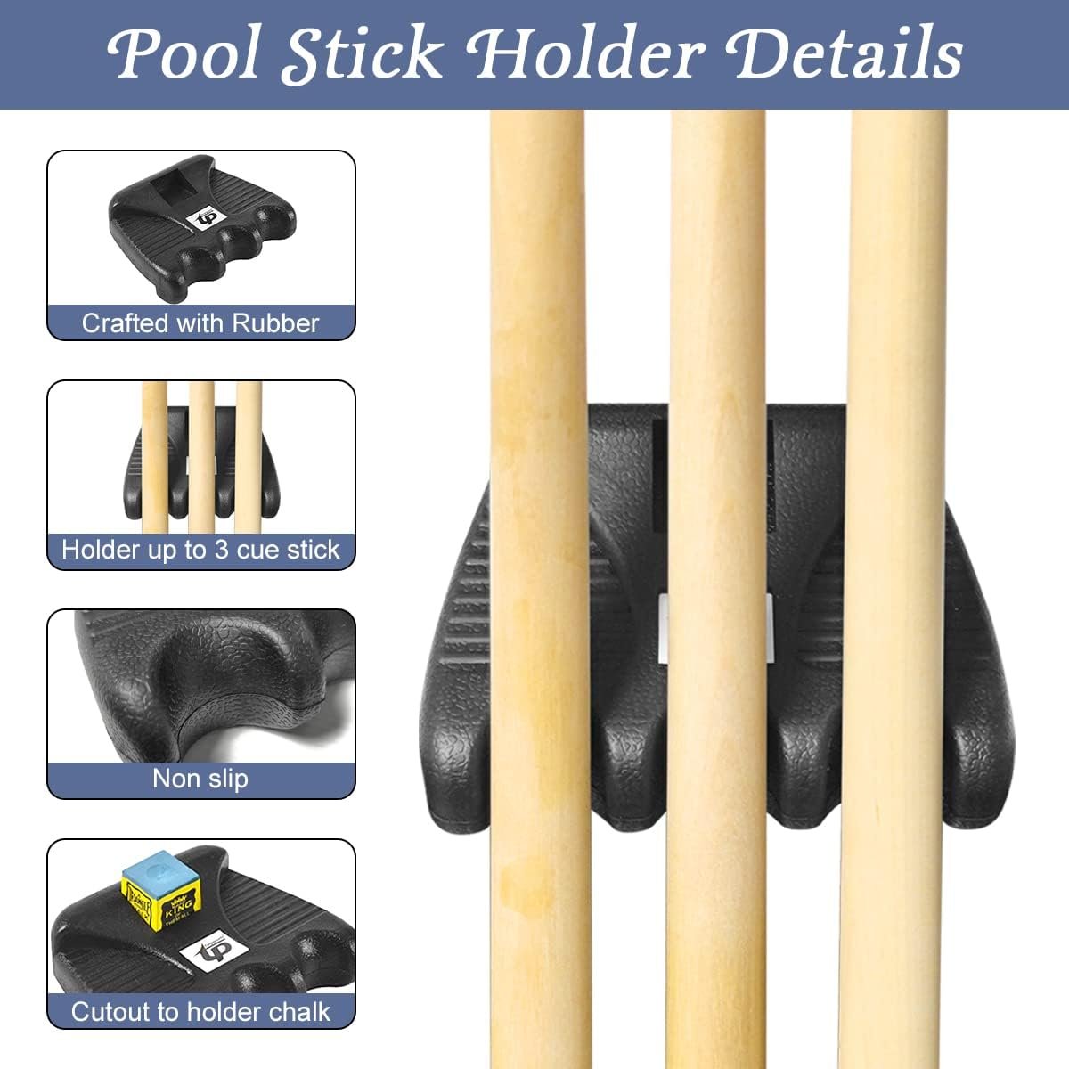 3 Holes Pool Cue Holder,Portable Pool Stick Holders for Table, Billiard Cue Stick with Chalk Holder, Pool Cue Rack Claw,Non-Slip Pool Cues Stick Holder