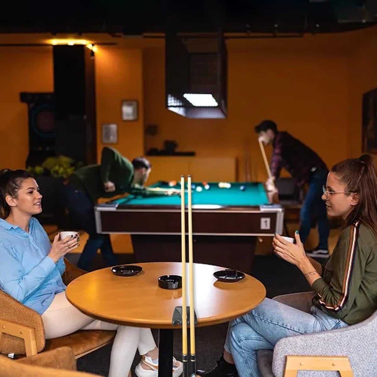 【 Billiard Cue Holder】 The pool cue holder rack can be put against the table or chair when you take a break or rack the balls for another match. It can hold 3 cues and place for 1 chalks.