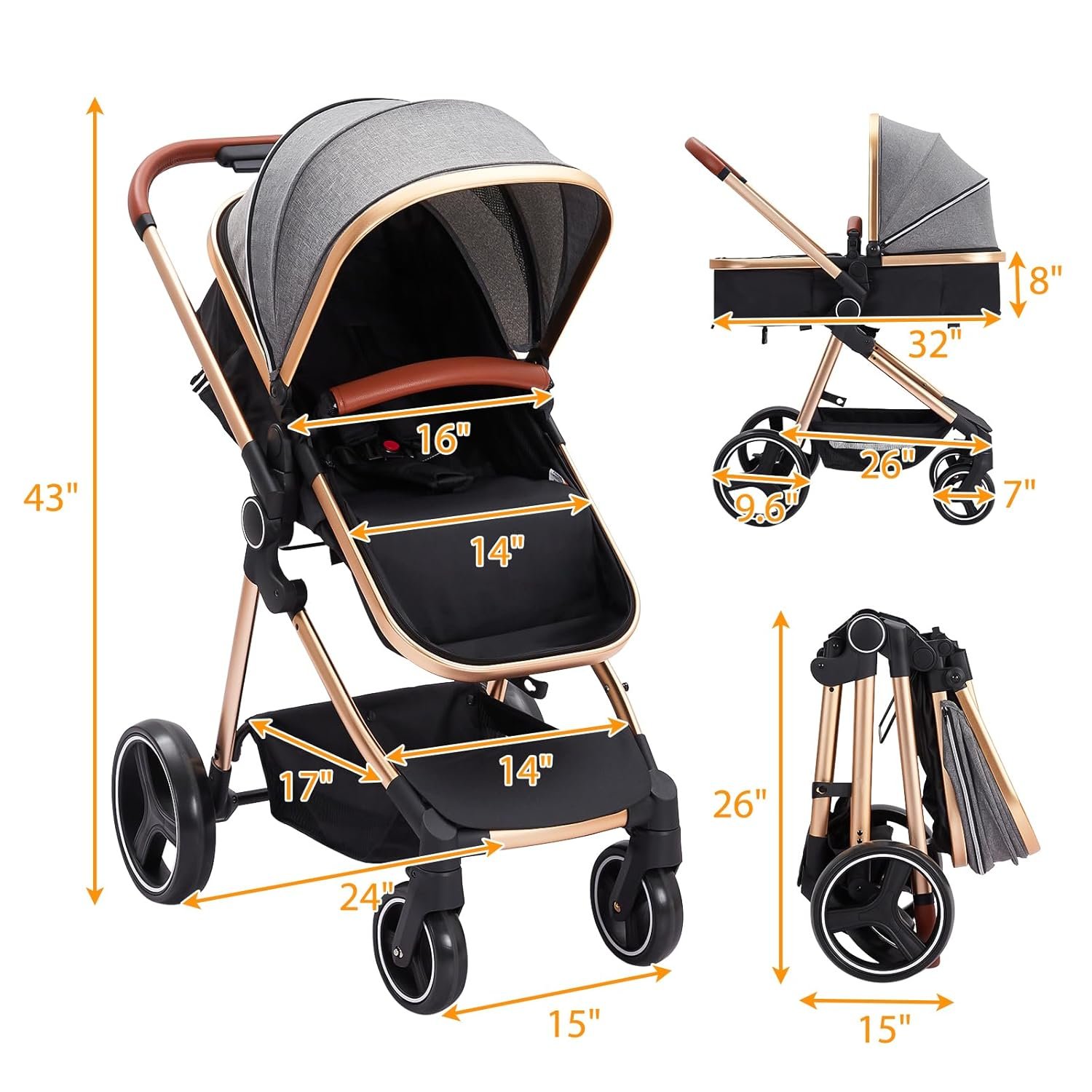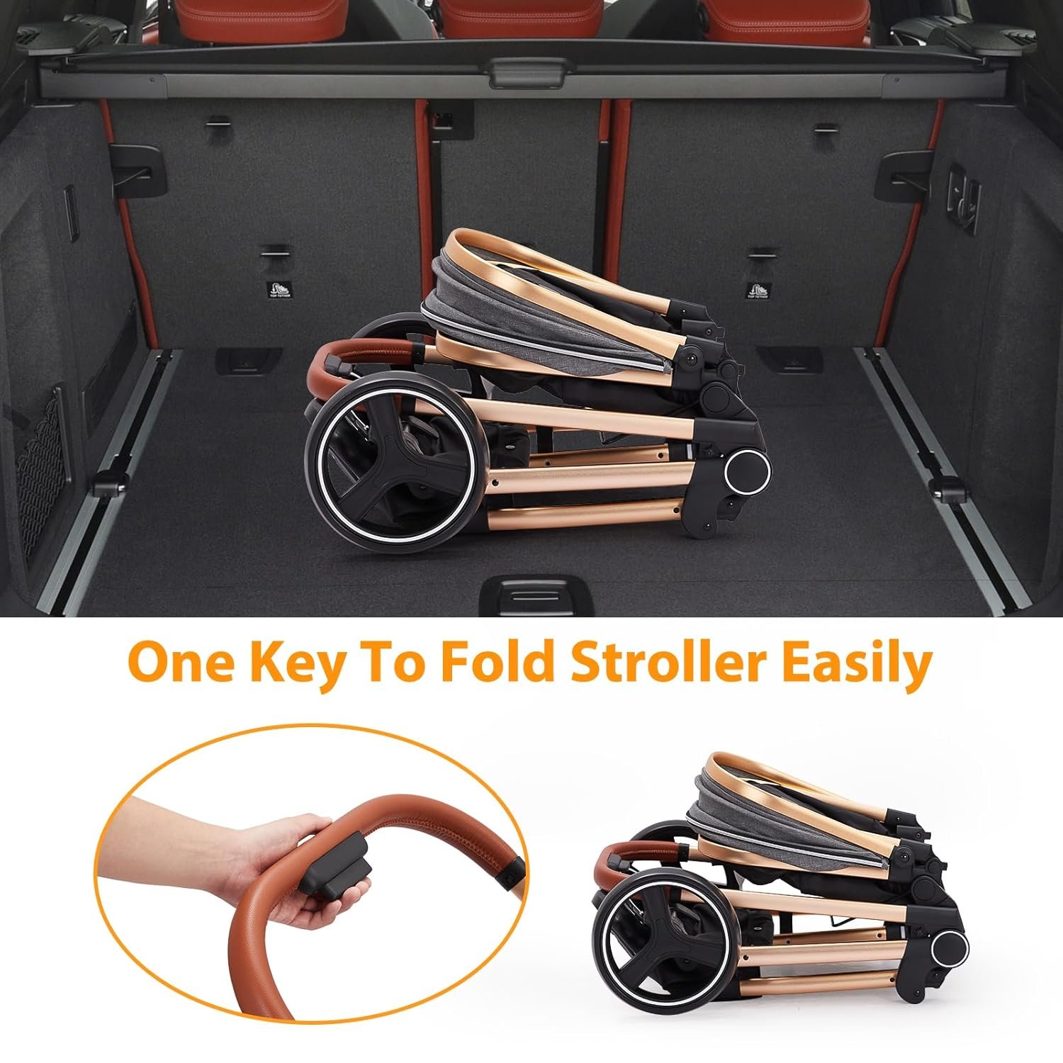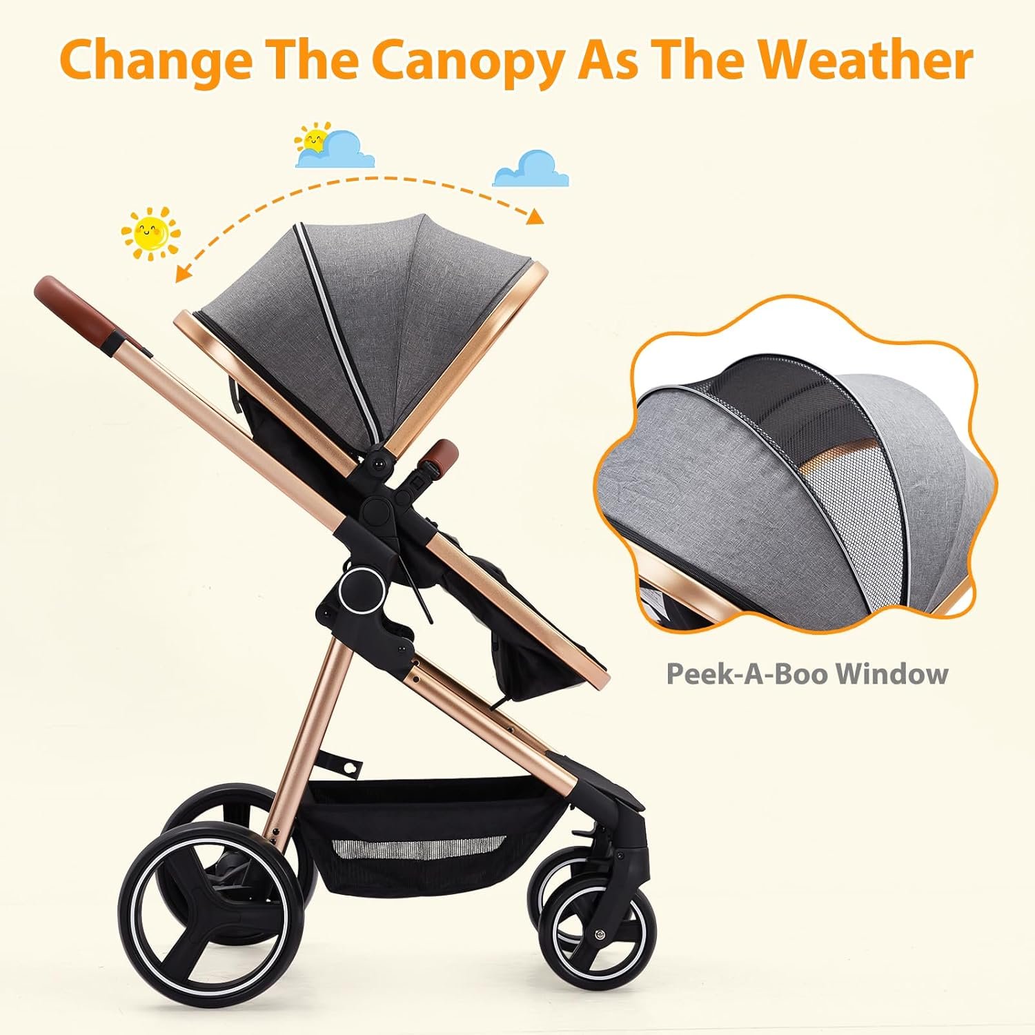 [3 In 1 Stroller] This baby stroller is suitable for infants and newborns 0-36 Months. It can be used as a pram and a bassinet. The 360° swivel seat allows curious toddlers to explore their surroundings or maintain comforting eye contact with caregivers. This innovative stroller grows with your child through every developmental stage.