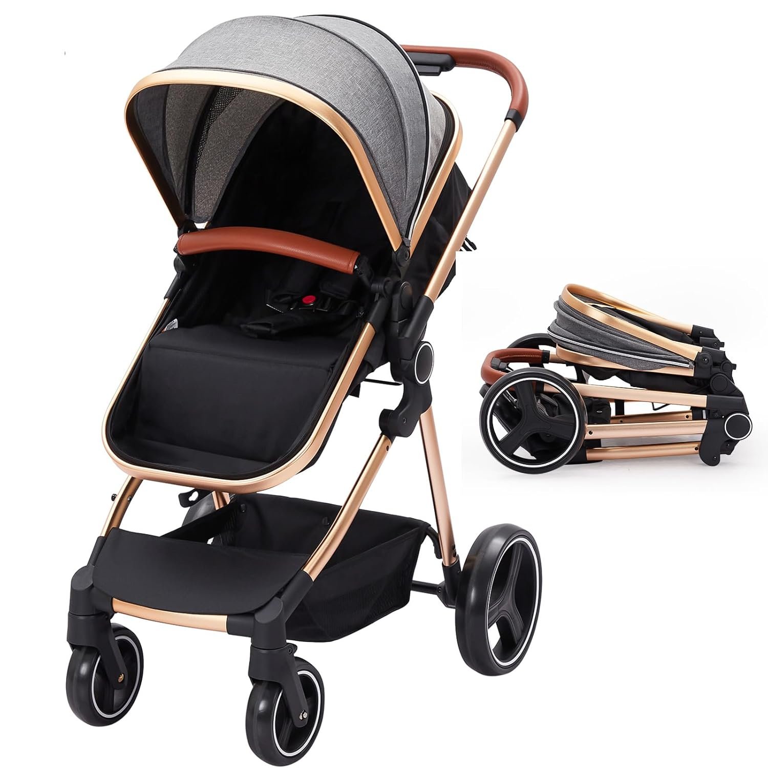 3 in 1 Baby Stroller Reversible Bassinet Pram, Foldable Pushchair with High Landscape, Suspension Wheels, UPF 50+ Canopy, Stroller for 0-36 Months