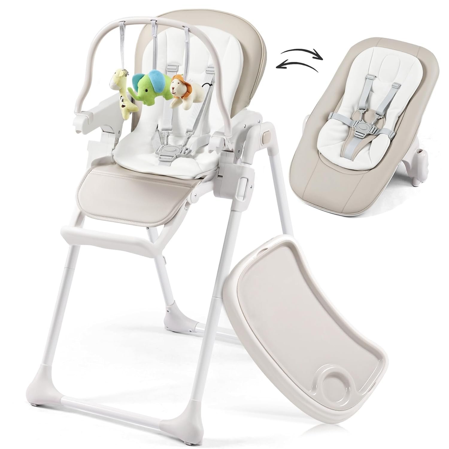 MULTIFUNCTIONAL & CONVERTIBLE DESIGN: This baby high chair isn’t just a place to sit; it transforms with your baby, becoming a play chair and a baby lounger. With a removable toy bar and toys that can be easily detached for extra playtime joy, it’s suitable for babies from 0-3 years. Designed to grow alongside your child, it offers endless possibilities for every stage. As your little one’s world expands, so does the high chair’s functionality