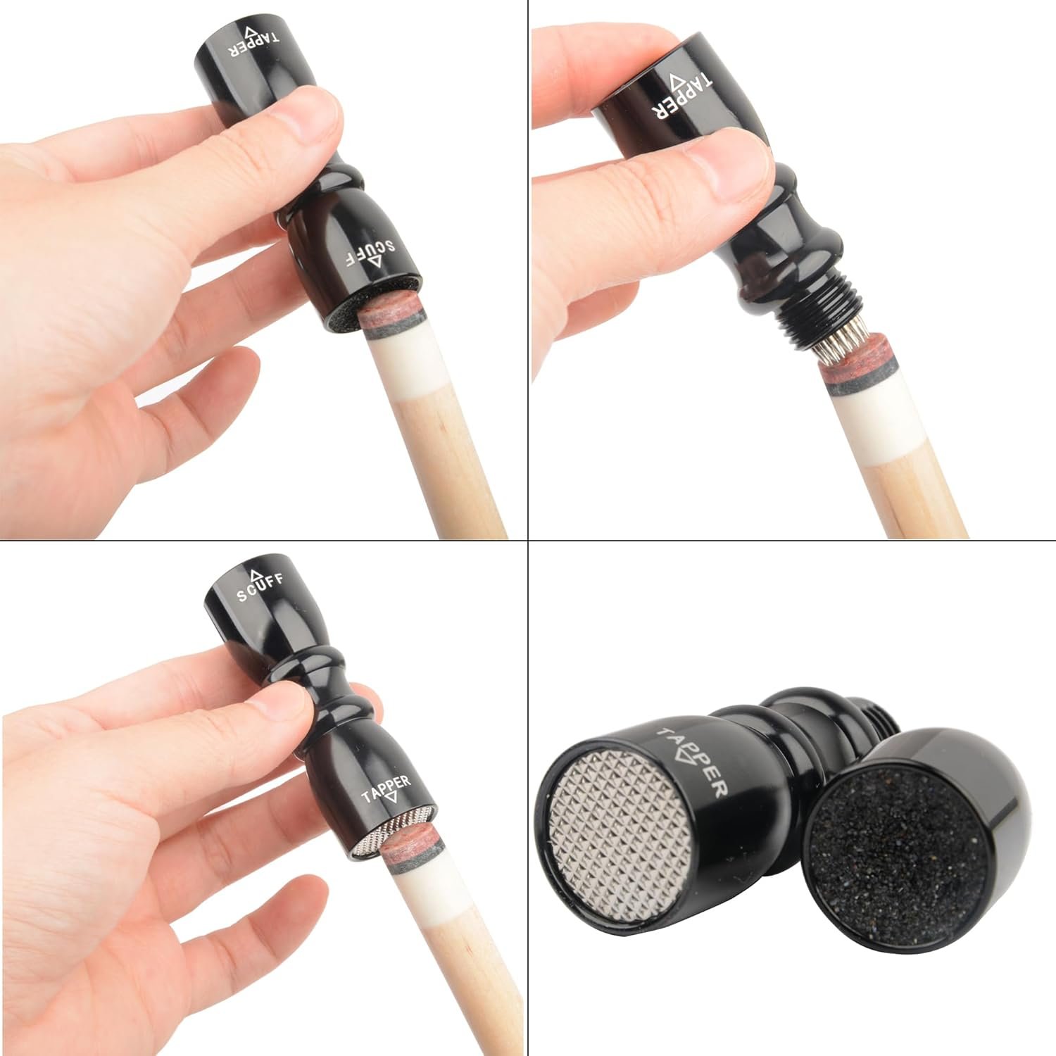 Tapper: Only need simply roughen up the surface of the tip so chalk will adhere to the tip. For better ball control.