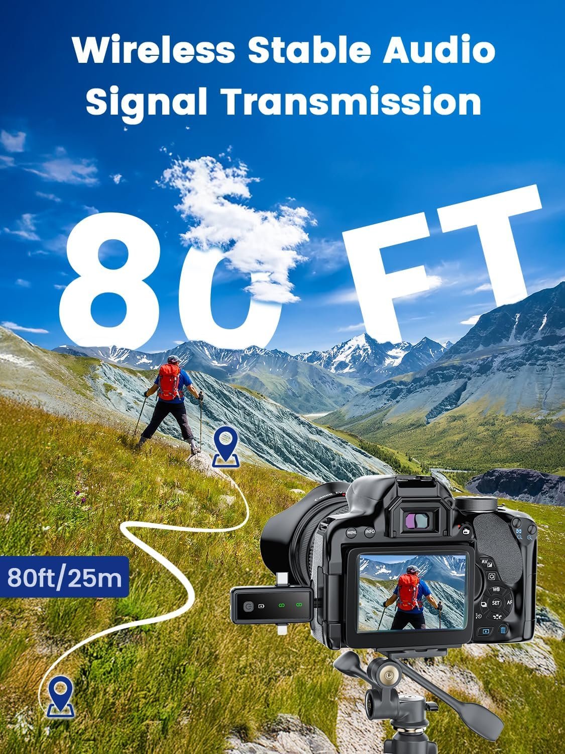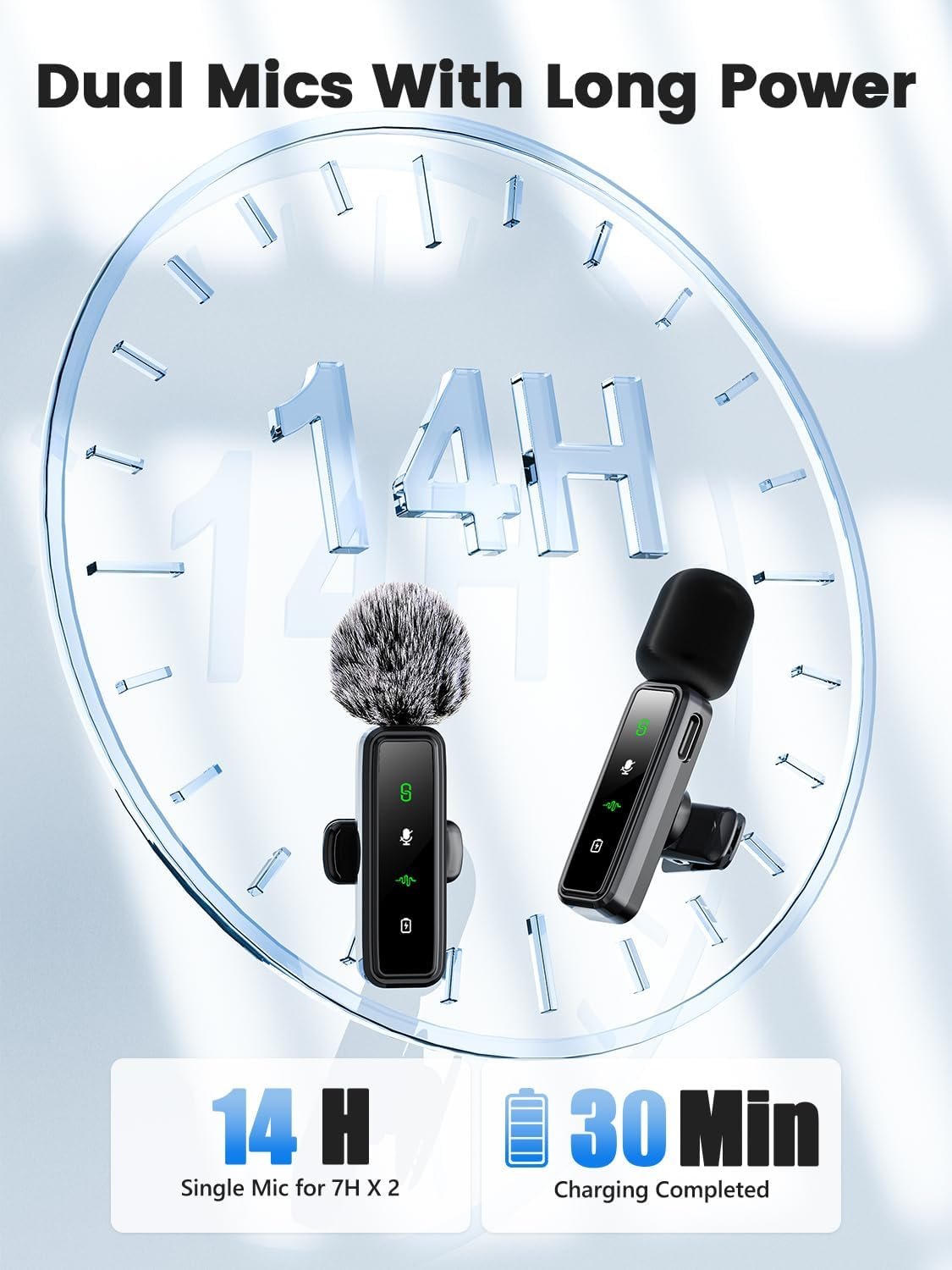 【Studio-Quality Sound, Zero Lag】 Capture crisp audio up to 80ft away with our mini lav mic’s 0.05s ultra-low latency. Ideal for filming wide-angle videos, presentations, or fast-paced action scenes. Includes 2 windproof foam covers and a fuzzy wind muff to block outdoor noise