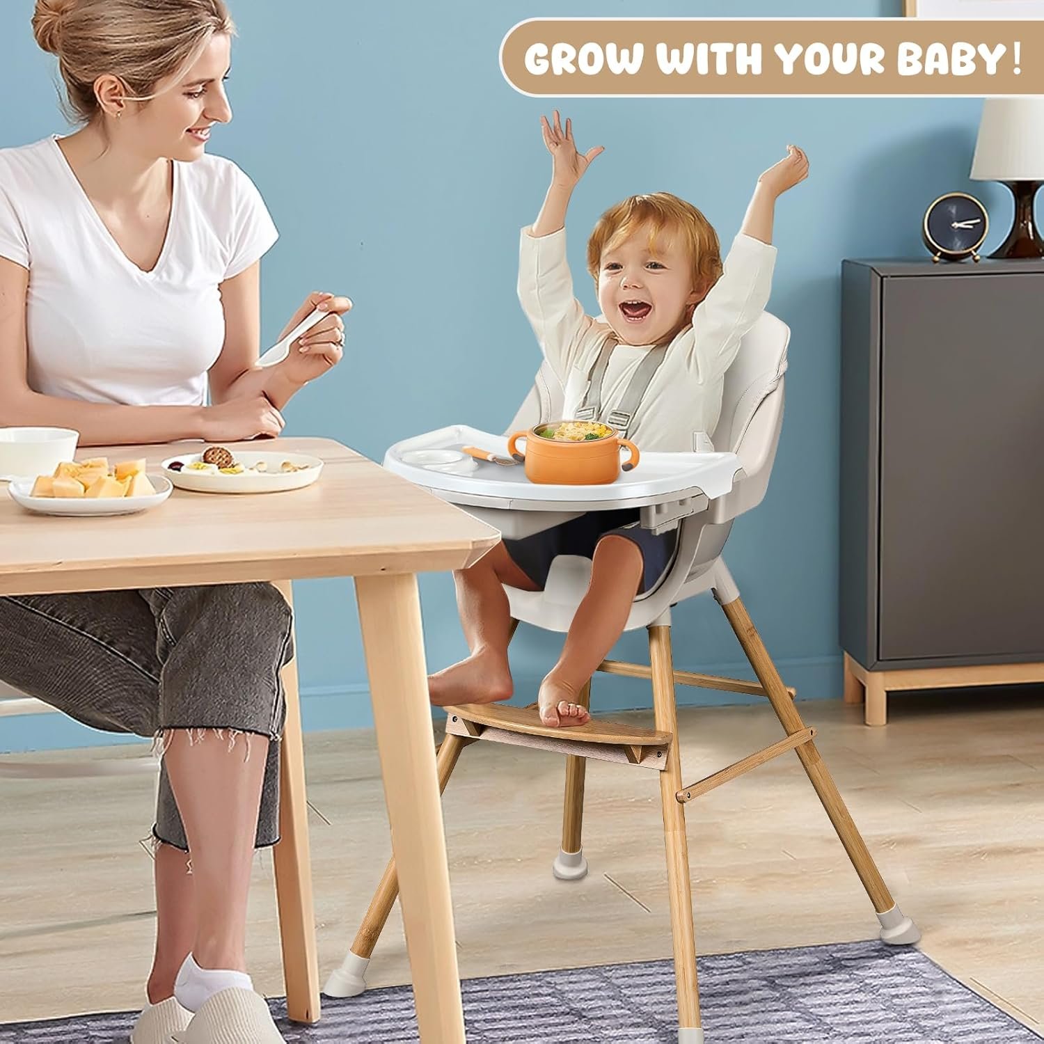 Practical Function: The toddler high chair comes with dual feeding trays with adjustable positions for different stages of babies! Suitable for babies who can sit independently from 6 to 72 months and weigh up to 30 kg.Our high chair can perfectly match the growth needs, seamlessly transitioning from newborn to toddler to child to adult.
