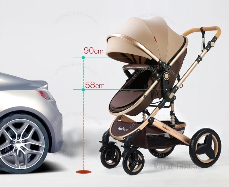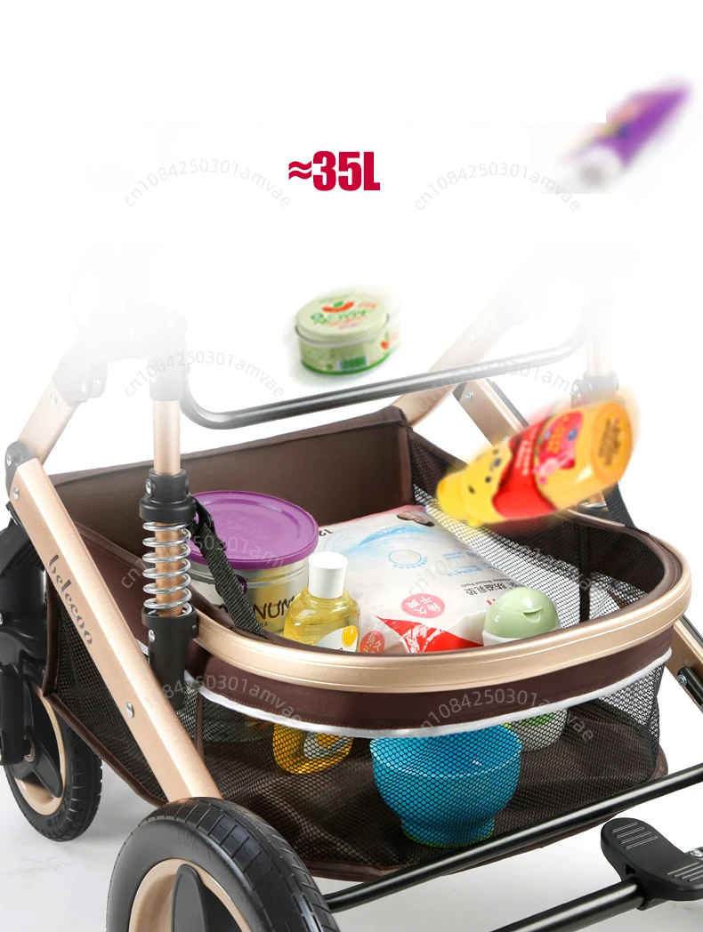 3-in-1high landscape baby stroller that can be seated or reclined,one click folding and folding,two-way shock-absorbing handcart