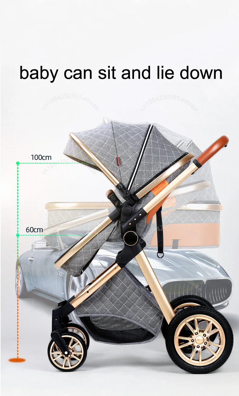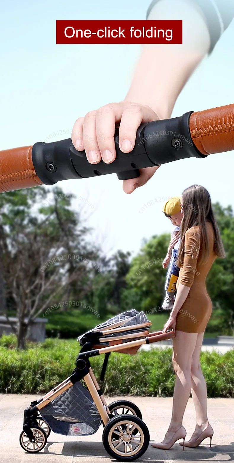3-in-1high landscape baby stroller+safety basket for sitting and lying,lightweight folding,two-way shock-absorbing,0-3 years old