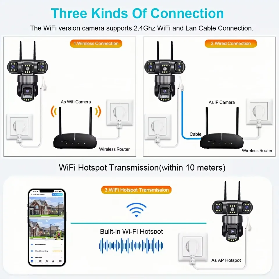 -Â WiFi camera version support 2.4G WiFi + RJ45 network port;