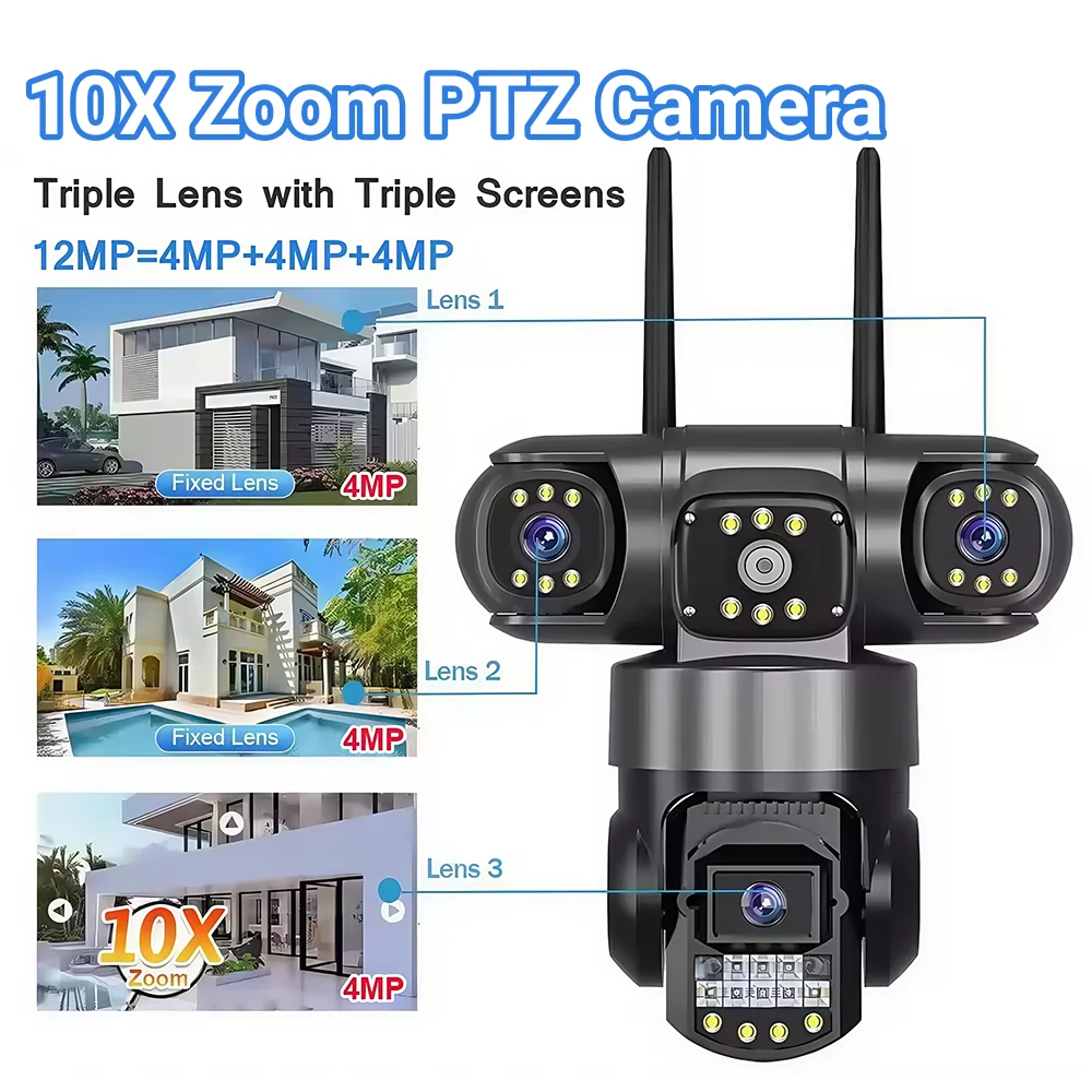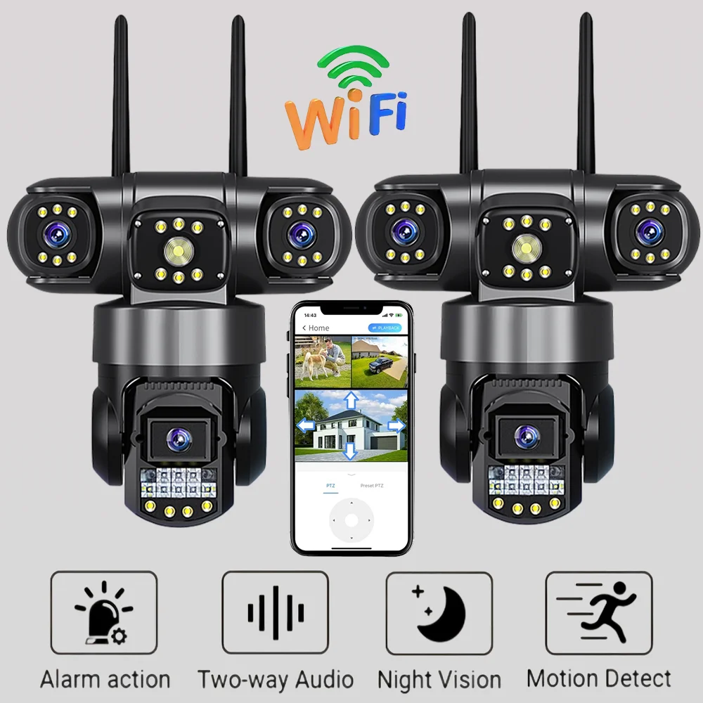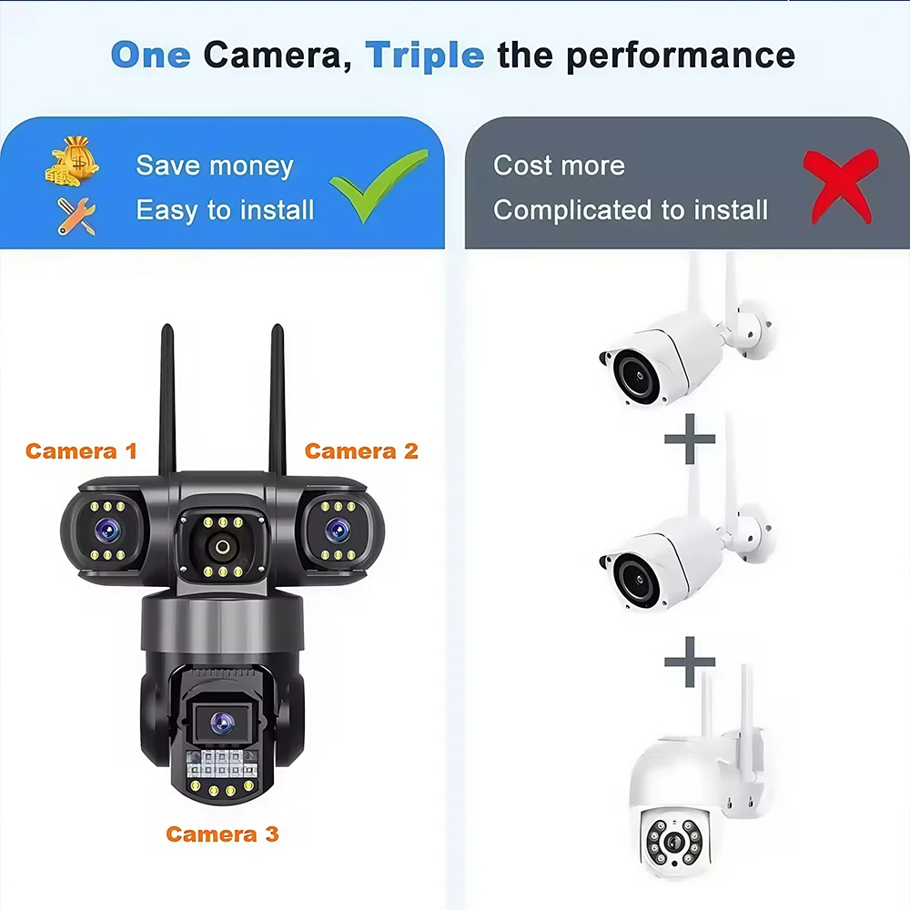 3 Lens Video Surveillance Camera Wifi Network CCTV Camera Wireless 360 Monitor Outdoor Waterproof Security V380 Pro PTZ Cameras
