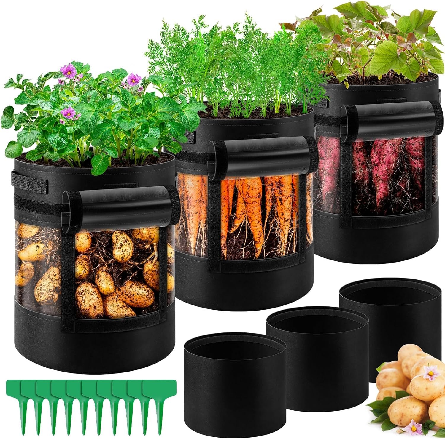 3 Pack 10 Gallon 360° Visibility Potato Grow Bags with Shading Flap, Plant Grow Bags for Growing Potatoes Heavy Duty Thickened Nonwoven Fabric Gardening Vegetable Growing Bags with Harvest Window
