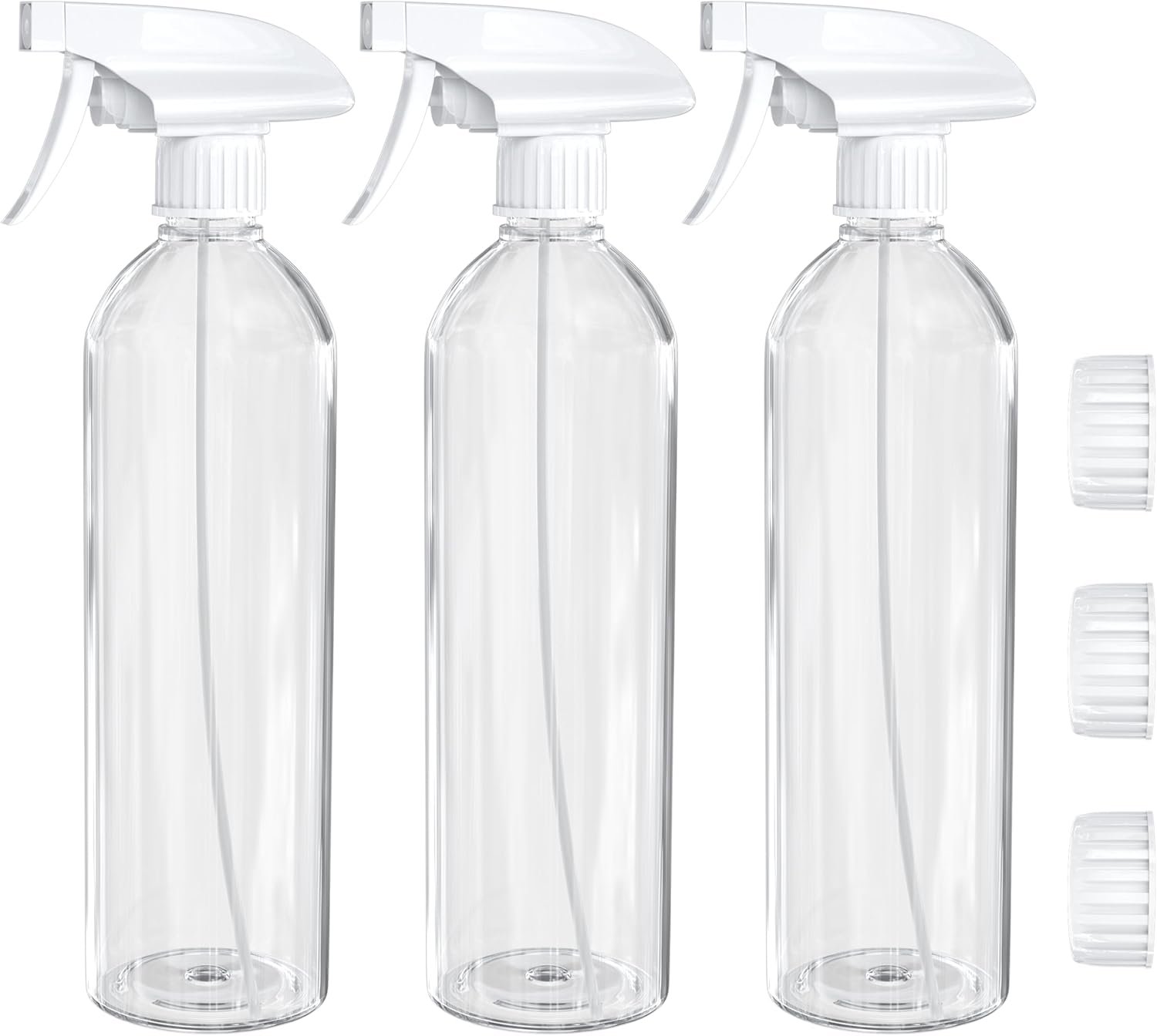 3 Pack 16.9oz/500ml Plastic Spray Bottles, Water Spray Bottle, for Cleaning Solutions, Plants, Pet, Essential Oils (Clear)