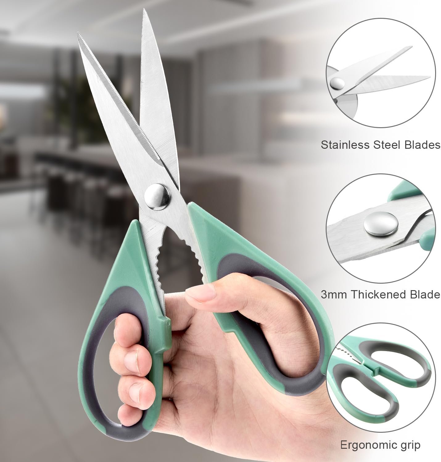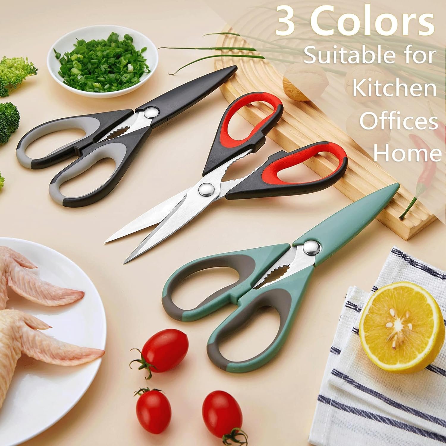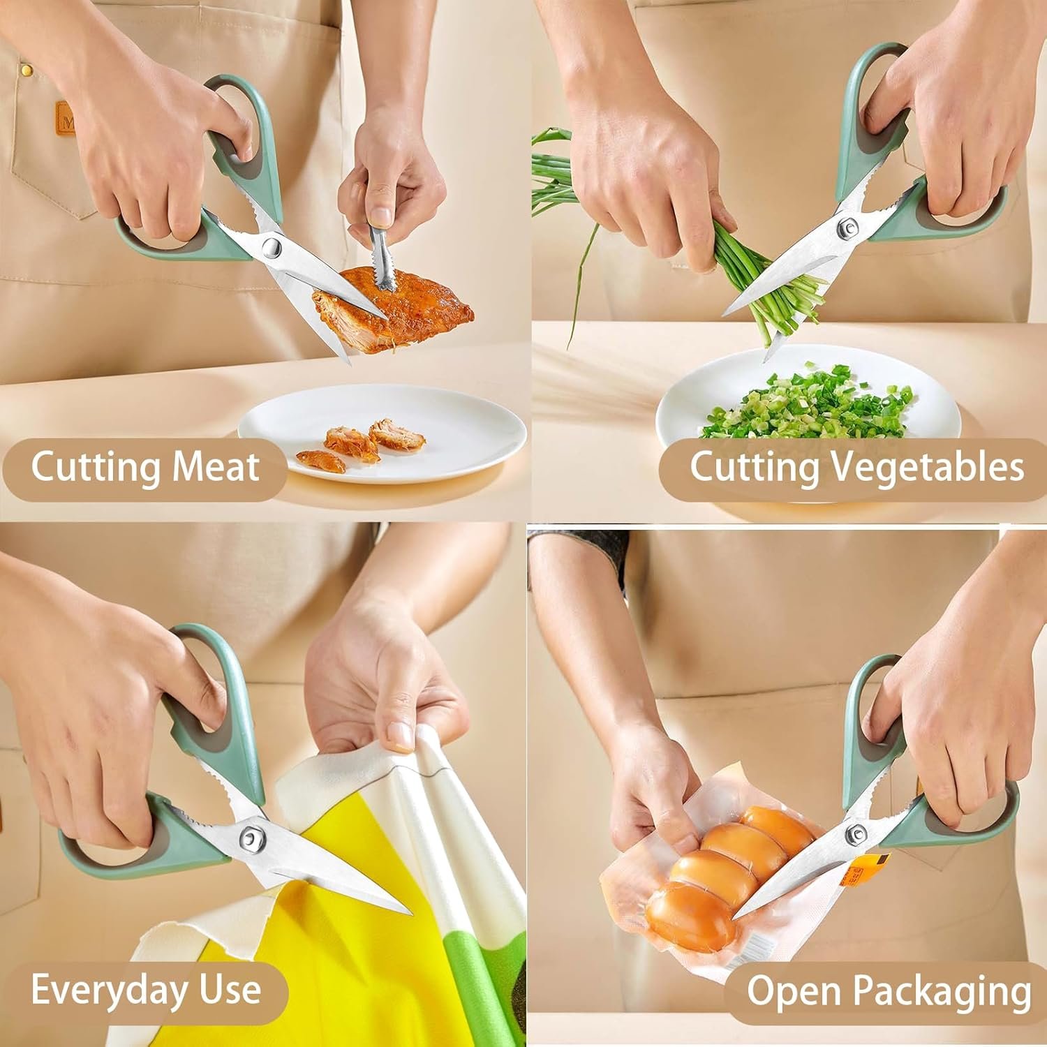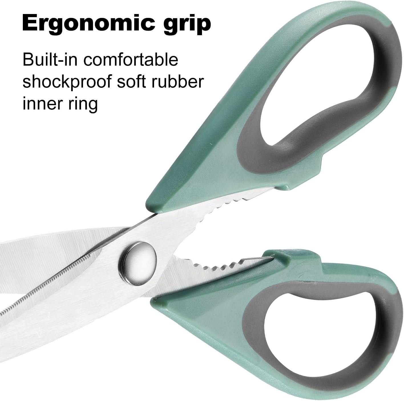 Versatile kitchen scissors: These all-purpose shears are perfect for food, meat, vegetables, chicken, poultry, fish, herbs, seafood, BBQ, and food packing bags – essential utility scissors for kitchen, home, apartment, and camper.