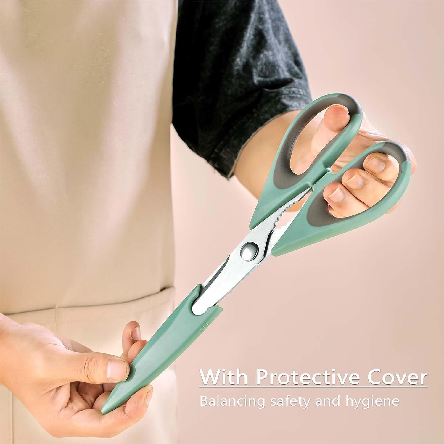 Protective cover included: the included protective cover can ensure the safety of the scissors, keep the blades hygienic when not in use, making them great kitchen accessories.