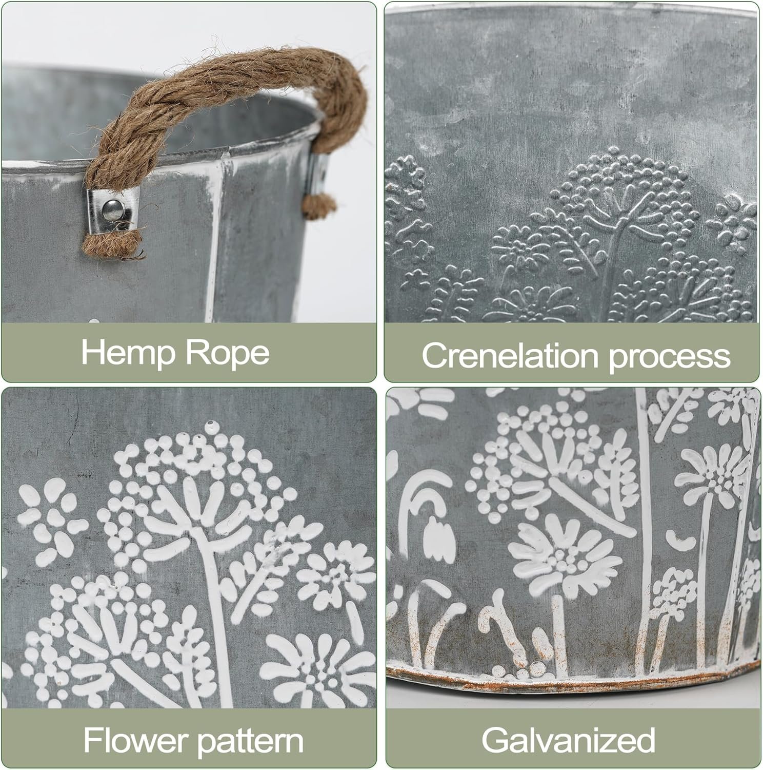 【Rust Prevention Material】Large galvanized planters made of high-quality iron, which is perfect durable and rust resistant. Galvanized flower pot has a beautiful appearance pattern, is lightweight and convenient, flexible and easy to use, and can be recycled.