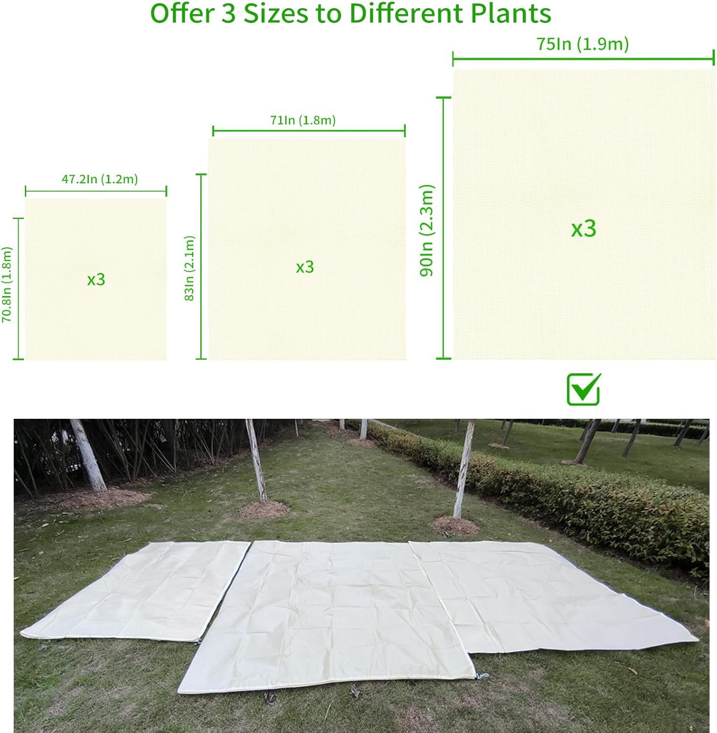 3 Packs Plant Covers Freeze Protection 75″x 90″ 2.65oz/yd2 Heavy Duty Anti Frost Blankets Cover Bag with Zipper Drawstring for Winter Outdoor Plant Tree Shrub Potted Plants (75″x90″)