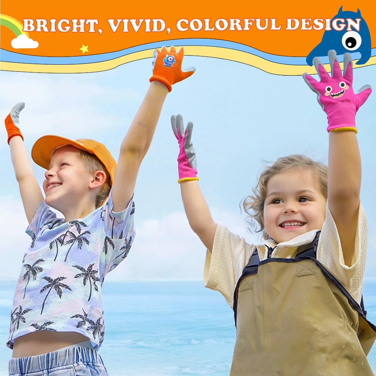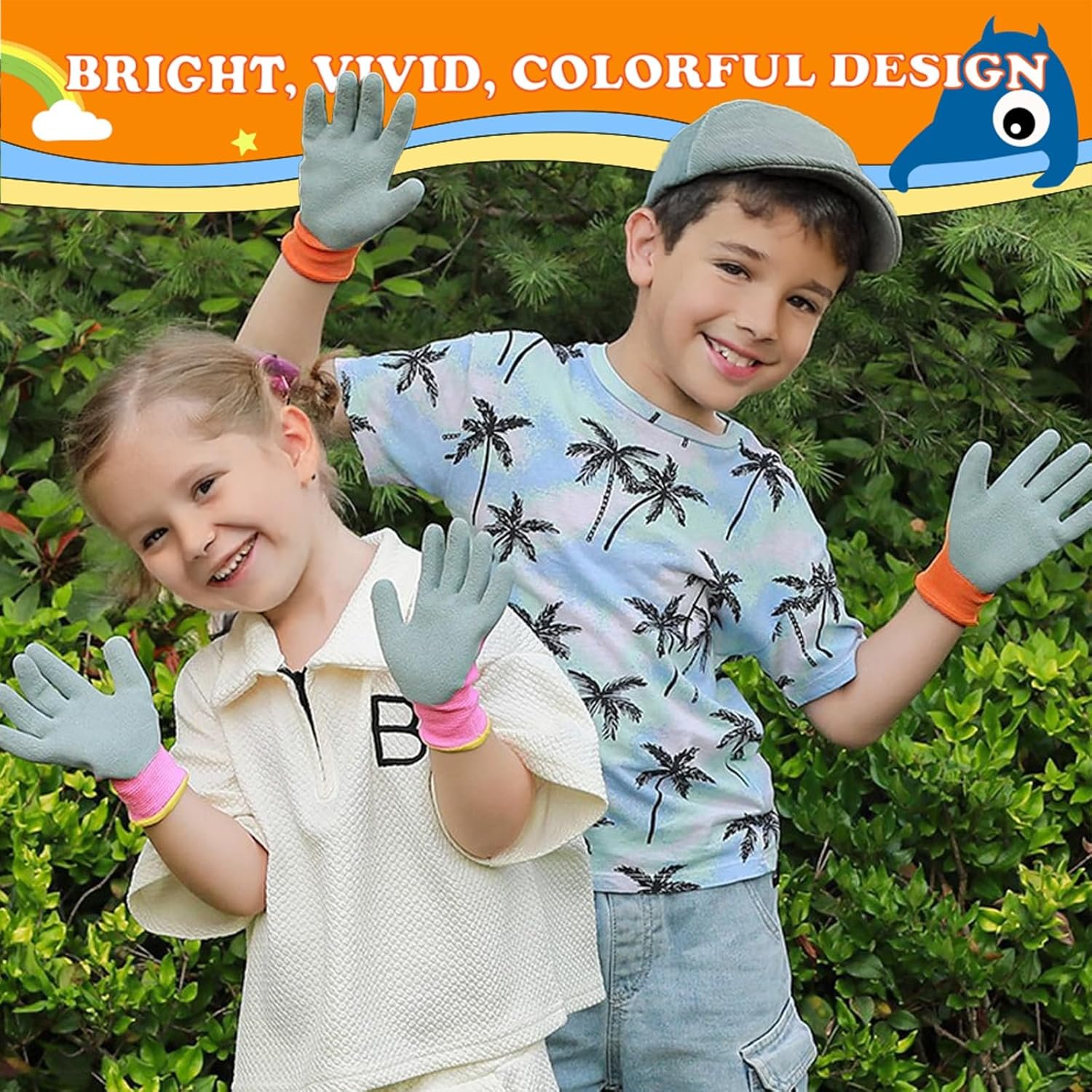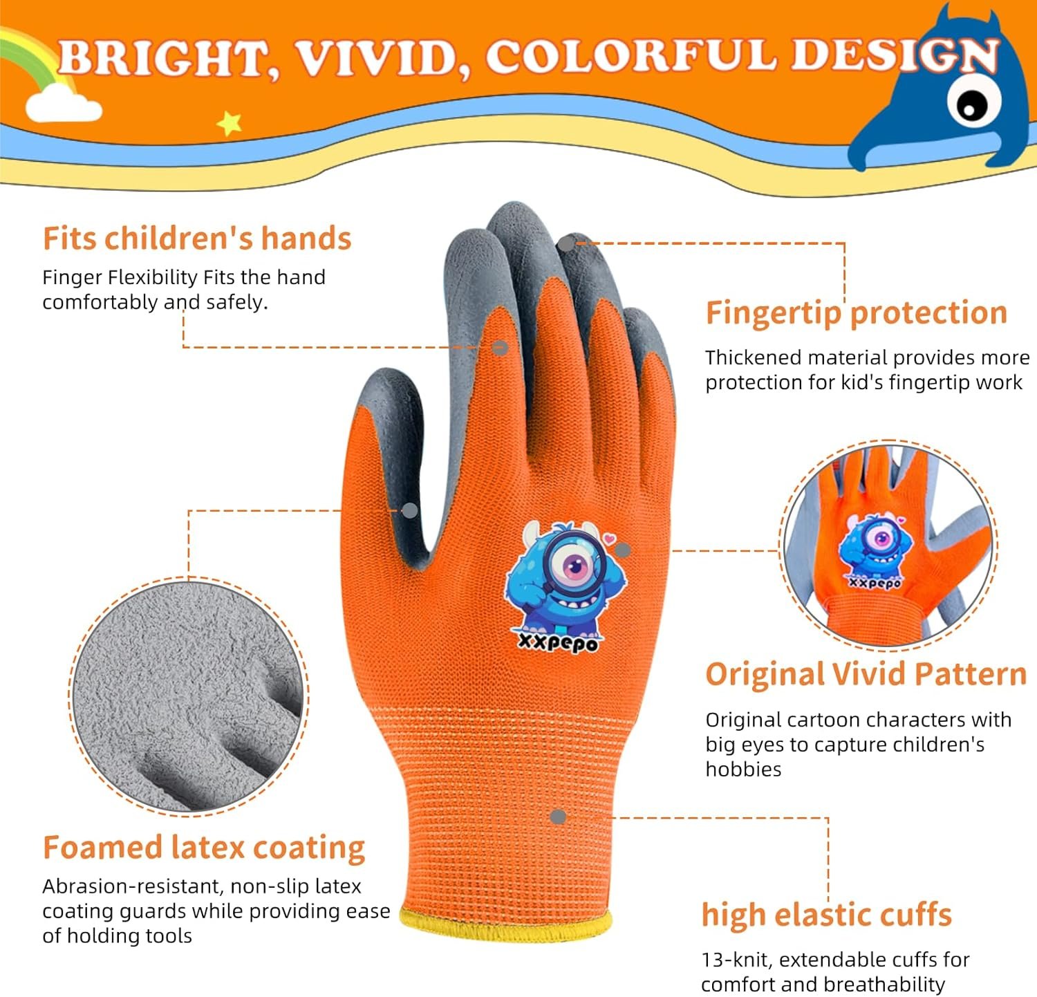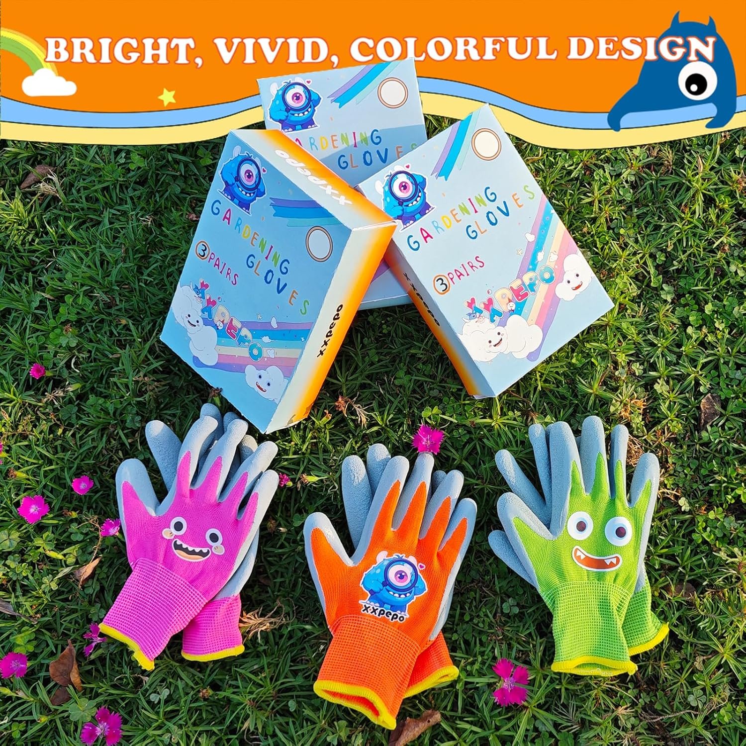 3 Pairs Kids Gardening Gloves. Children Rubber Coated Garden Gloves, Kids & Toddler Outdoor Work Gloves For Age 3-12.