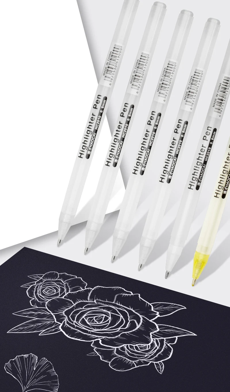 10 reviews for 3 Pcs Creative White Ink Gel Pen Highlight Marker Pen 0.8mm Fine Tip for Student Stationery Drawing Art Writing School Supplies