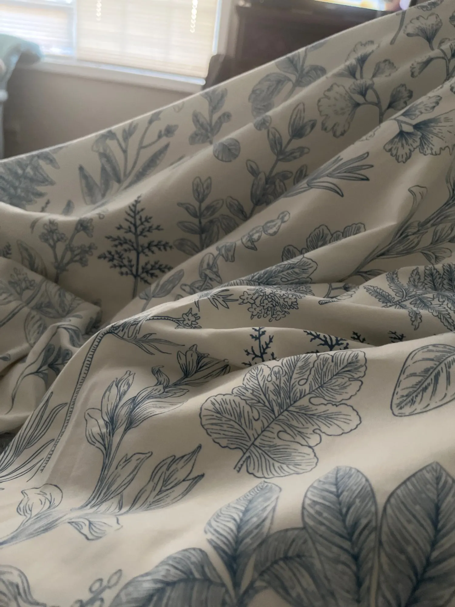 The fabric is soft and pleasant, the colors are much more beautiful than in the picture, it’s really hard to get out of bed.