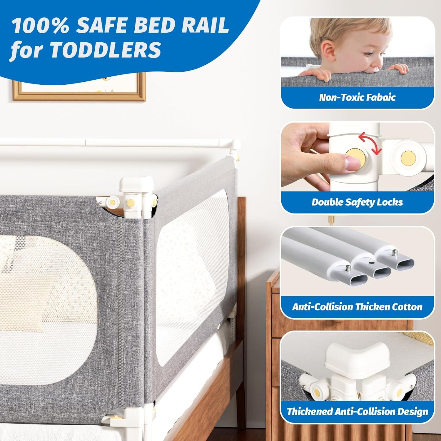 Consistent Safety Protection for Different Bed Types:Each rail comes with an adjustable height feature, allowing it to fit various mattresses and ensuring consistent safety standards. This product is compatible with a wide range of bed types available in the U.S. market, including twin, full, queen, king, and California King beds. No matter the bed type, this rail guarantees uniform safety for your child, making it worry-free for parents