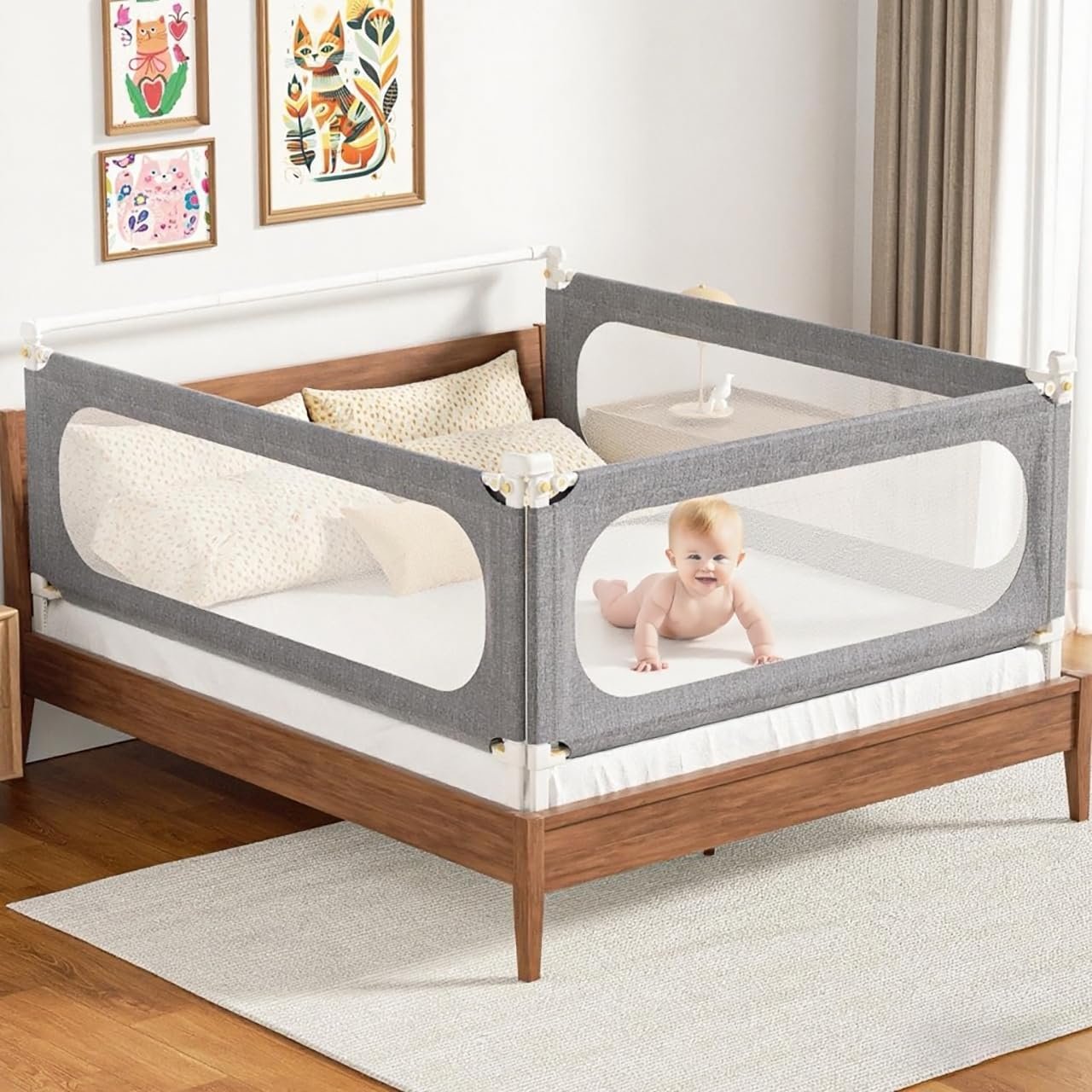 Four-Side Connection Design for Enhanced Stability:This bed rail uses a four-side connection design with an added headboard support rod, enhancing overall stability and preventing wobbling often seen with one- or two-piece rails. The tight connection ensures the rail fits securely against the mattress, reducing shifting and gaps, providing maximum safety for your child while they sleep
