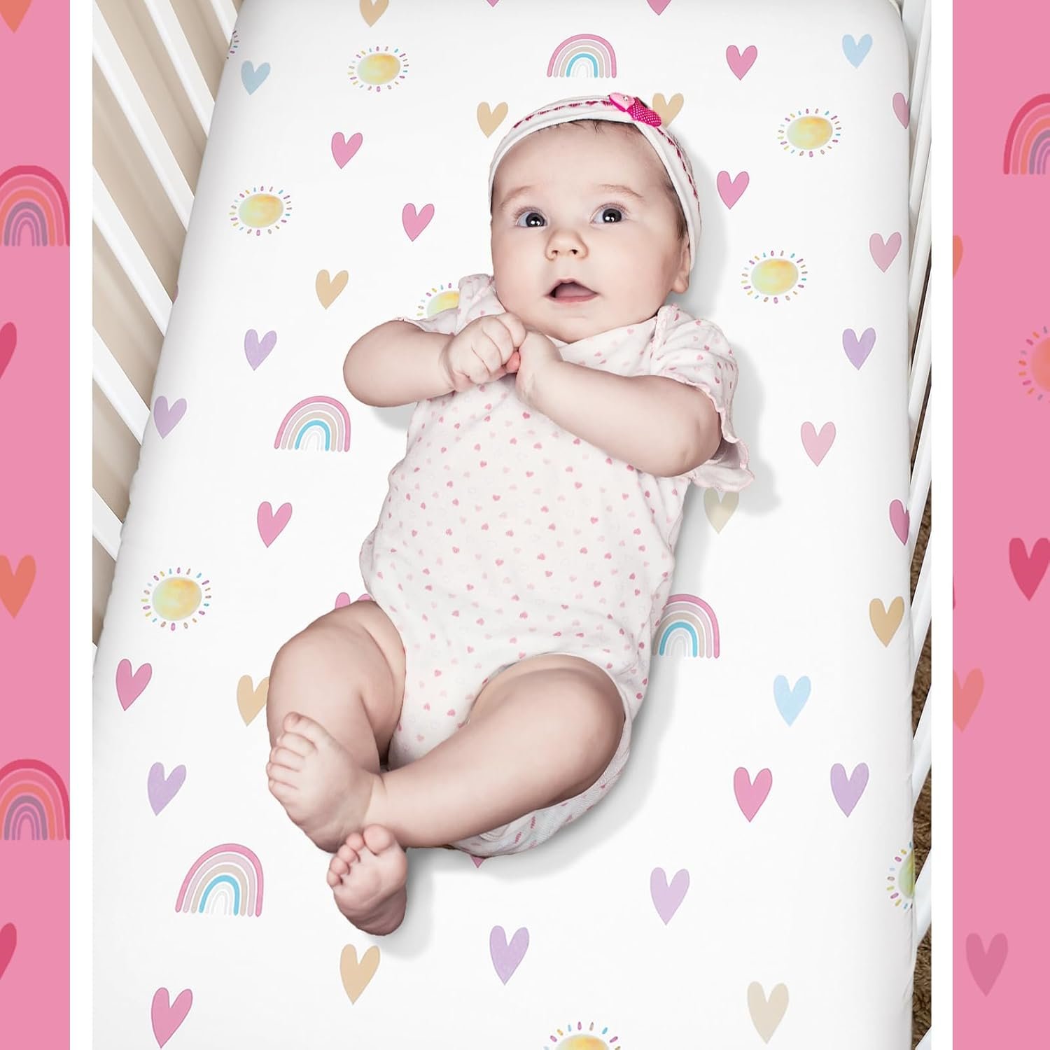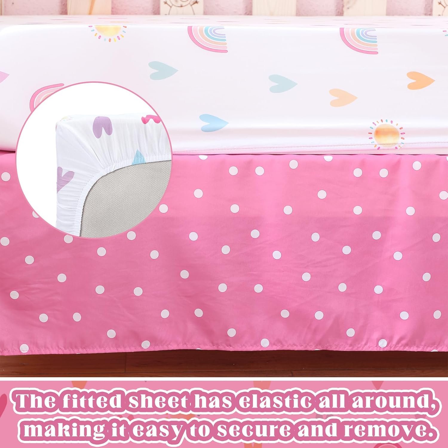 Wide Application: this pink rainbow crib bedding set for girls is suitable as a warm gift for expectant mothers or baby showers, can decorate the crib to create the rainbow theme baby room or nursery, providing a warm small space for baby girls