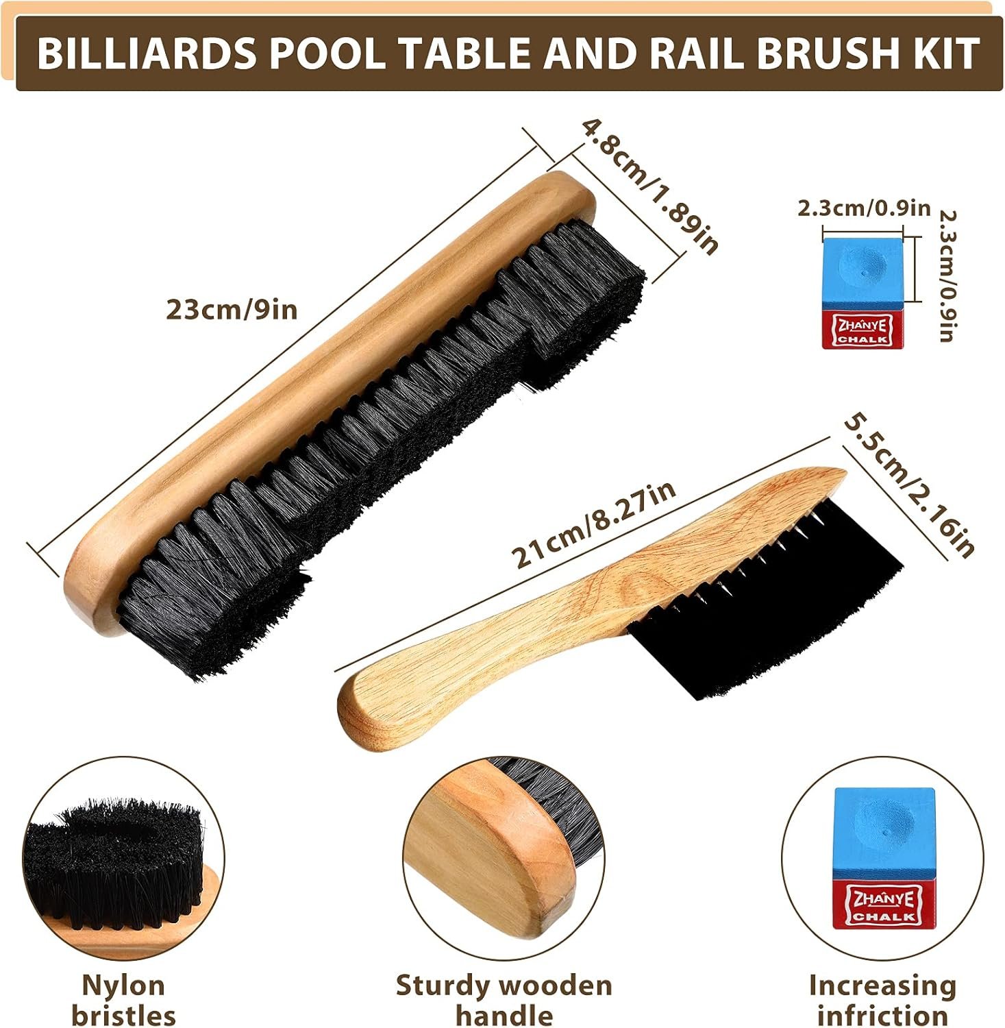Quality material: these billiards pool cleaning tools are made of durable wood and quality nylon bristles; They are durable for you to use for a long time, so you can use for clean billiards pool table at your house, game room or billiard hall, giving you nice use experience