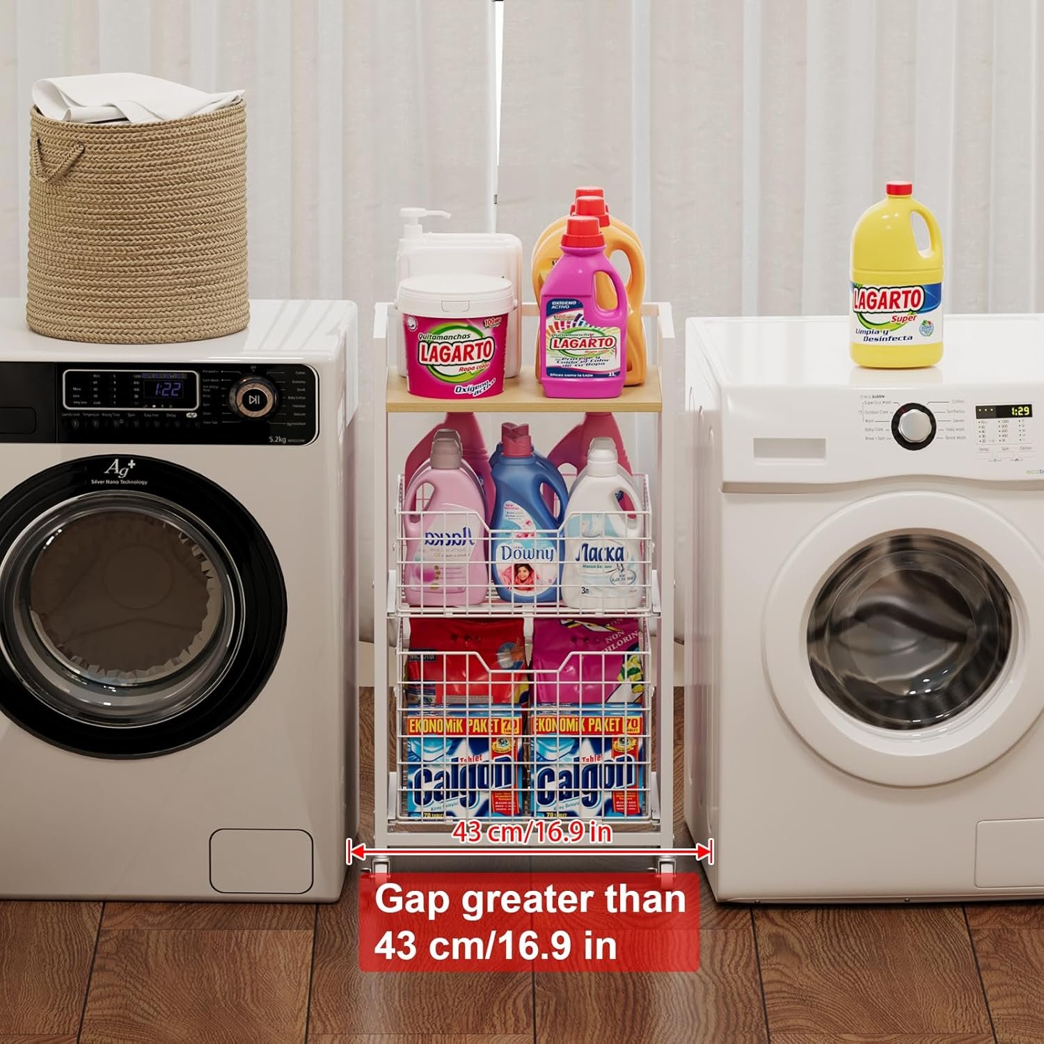 Laundry Room Cart with Pull-Out Baskets: The rolling storage cart’s basket adopts a slide-out design, so you can easily access items by pulling the basket. It is very suitable for use in laundry room, such as between the washing machine and dryer or the washing machine and the wall