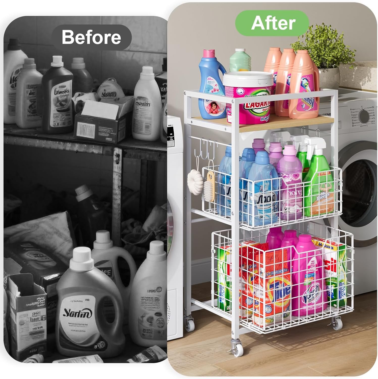 Two Ways to Use: The front enclosure on top of the laundry storage cart are removable. According to the height and size of the laundry supplies, the product usage can be flexibly adjusted to make it more convenient to take and tidy up laundry detergent and other items