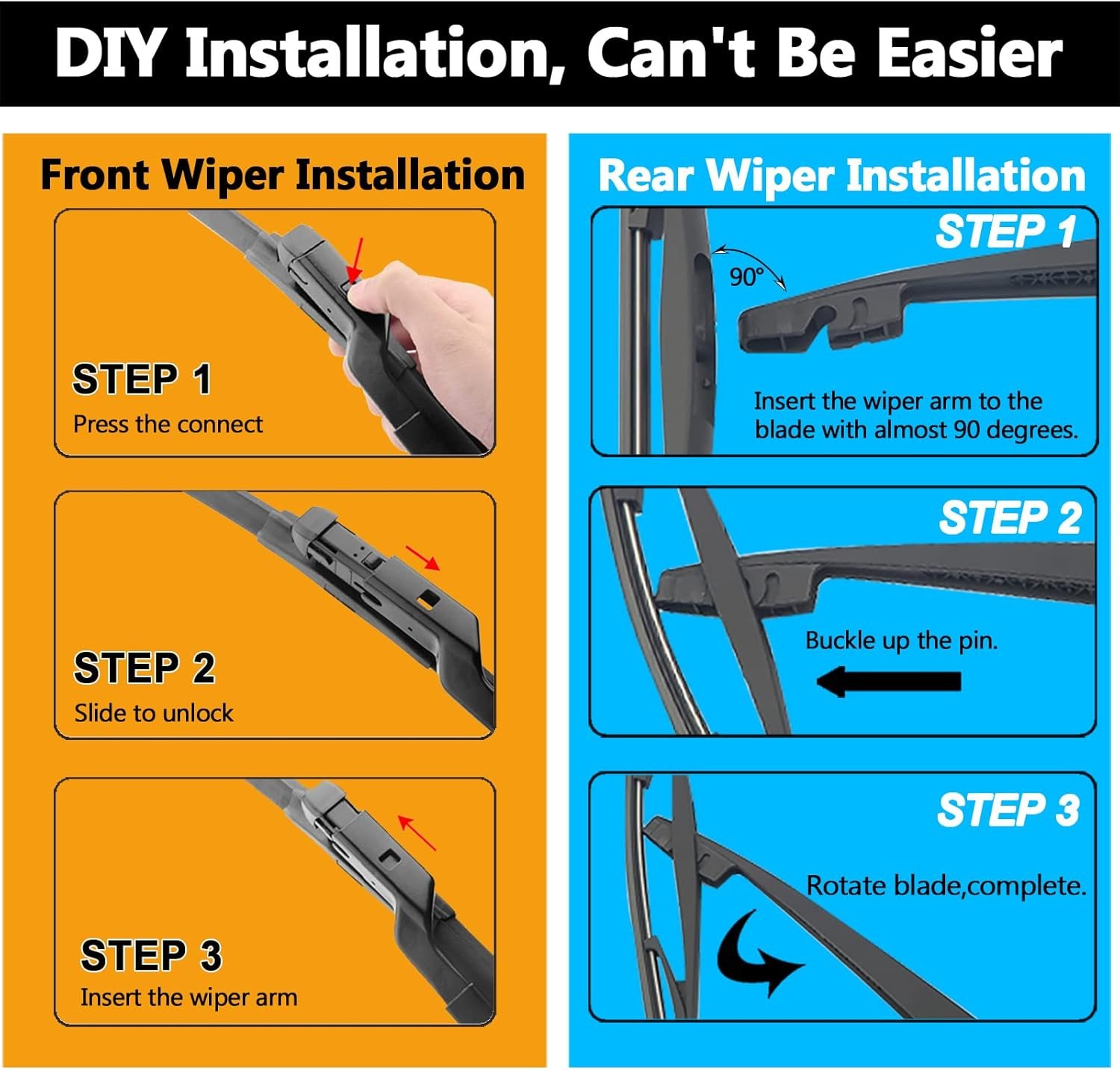 【EASY-TO-INSTALL】 Quick and easy to install. fit perfect to your car, like the original parts. It’s installed to the wiper arm by means of Top Lock.