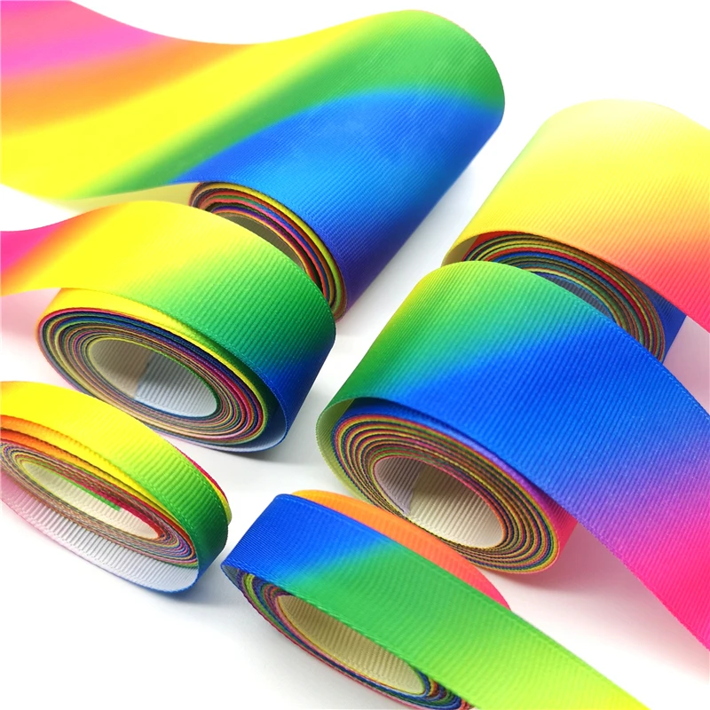 3 yards 10-75mm Gradient Rainbow Grosgrain Ribbon for Wedding Home Decor DIY Gift Wrapping Party Handmade Accessories