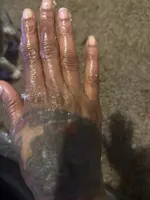 Works wonderfully strong scent but works like magic . First two when the product on have it drys up pretty quick as u running and very sticky rinse with warm water last two pics u can see the difference will be ordering more