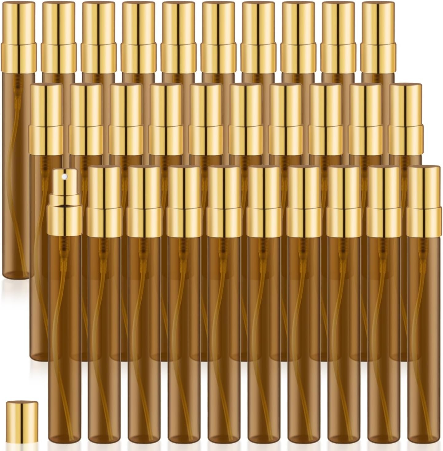 30 Pack Empty Mini Glass Spray Bottle Refillable Fine Mist Perfume Atomizer Portable Travel Sample Spray Bottles Containers For Perfume Essential Oils Cosmetics Liquid (amber bottle, 10ml)