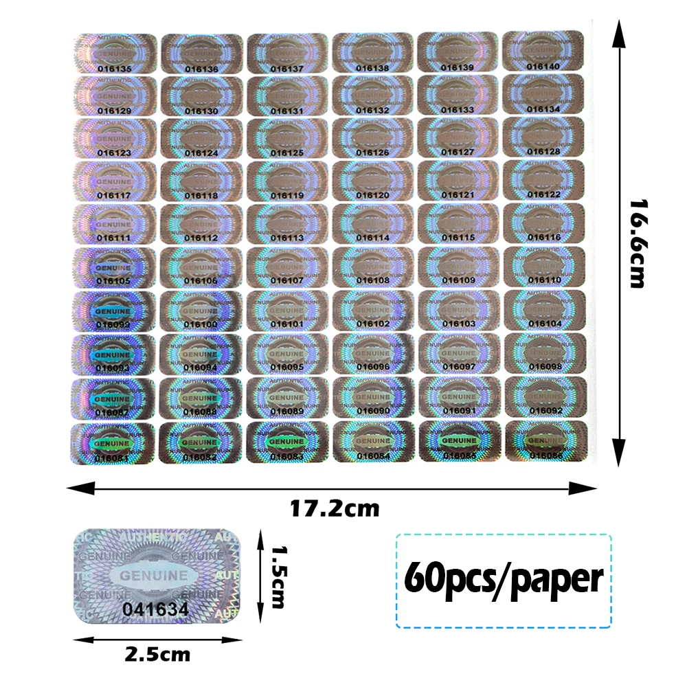 300/600pcs 2.5×1.5cm Security Seal Tamper Proof Stickers Holographic Warranty Void Laser Label with Serial Number Adhesive label