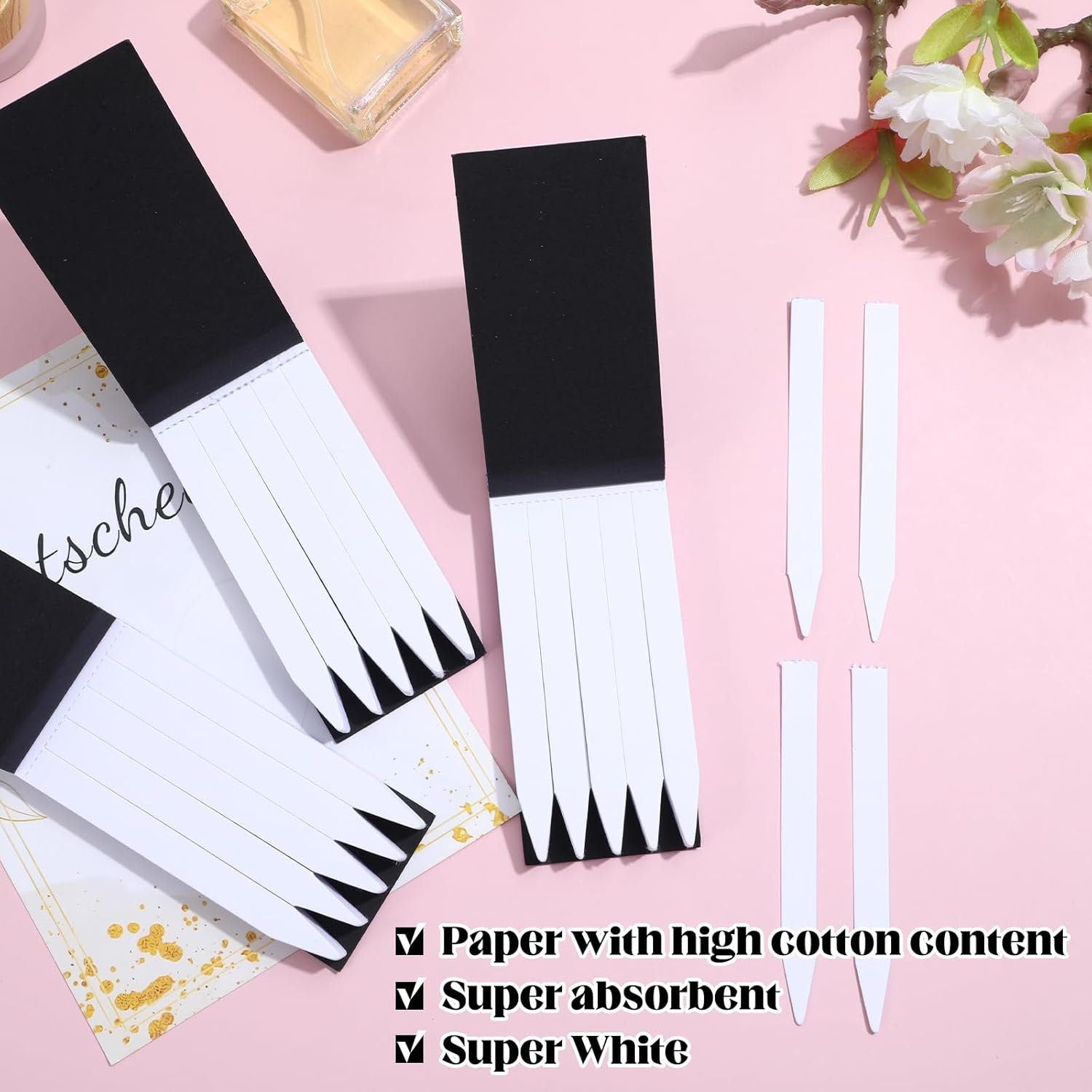 perfume tester strips: Crafted from 100% high-quality paper, these strips are perfect for testing a wide range of scents, including perfumes, essential oils, and colognes.