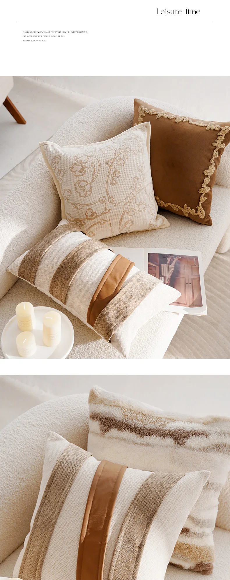 30×50/45x45CM Light Luxury Throw Pillow Cover Brown French Stamping Waist Cushion Cover Decor Home Decorative Pillowcase