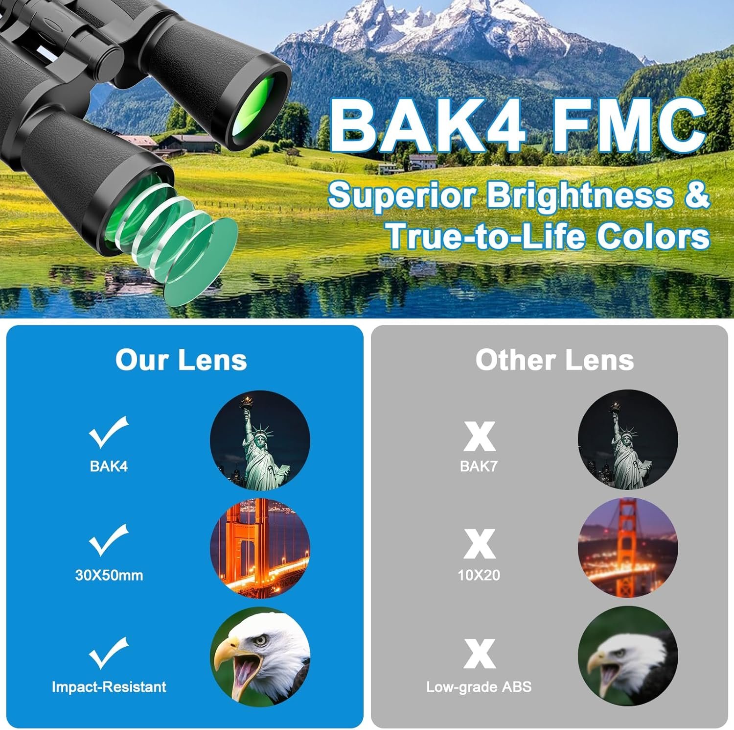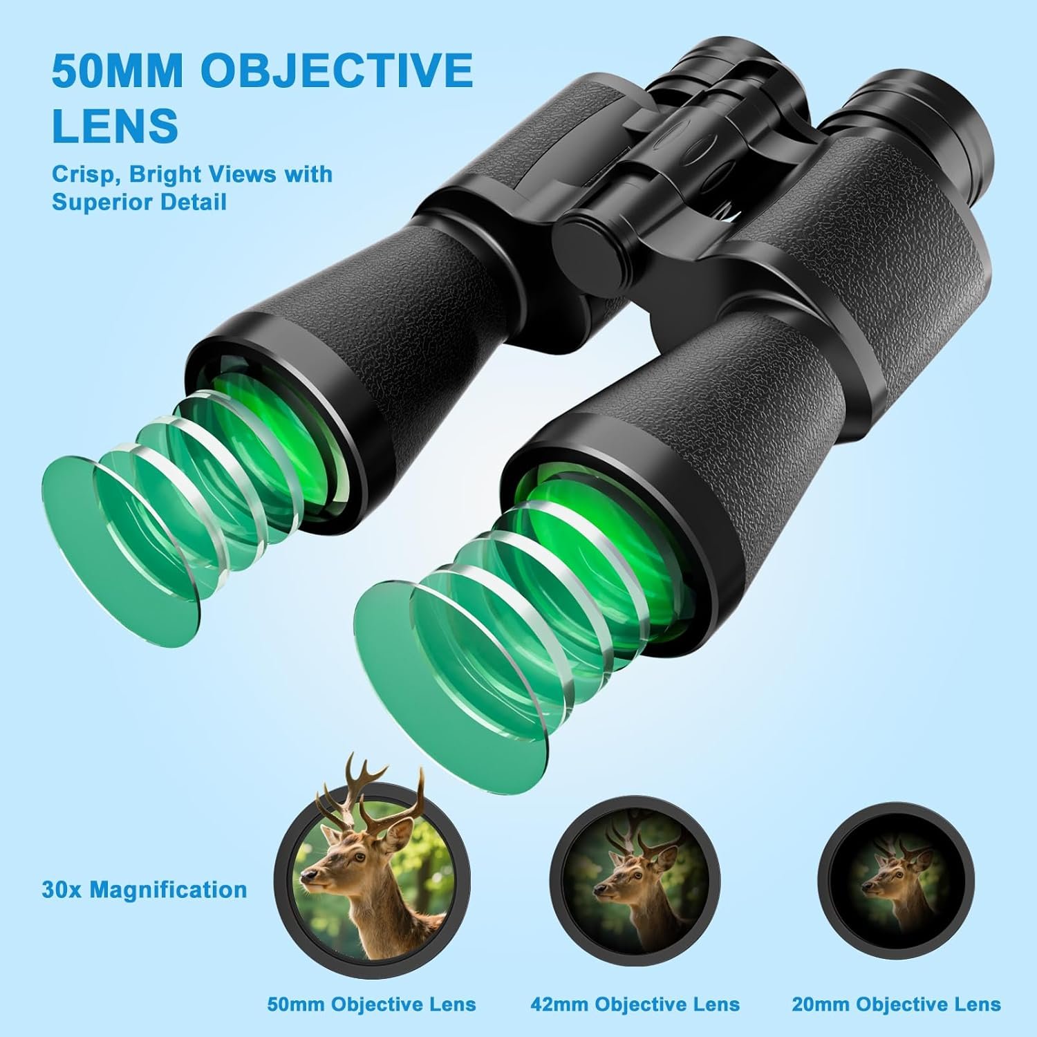 Large Eyepiece for a Wider, Sharper View — See More with 30×50 Binoculars