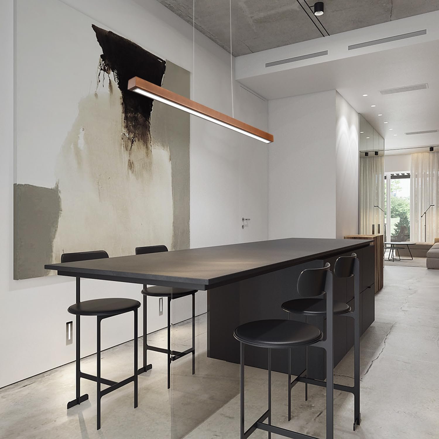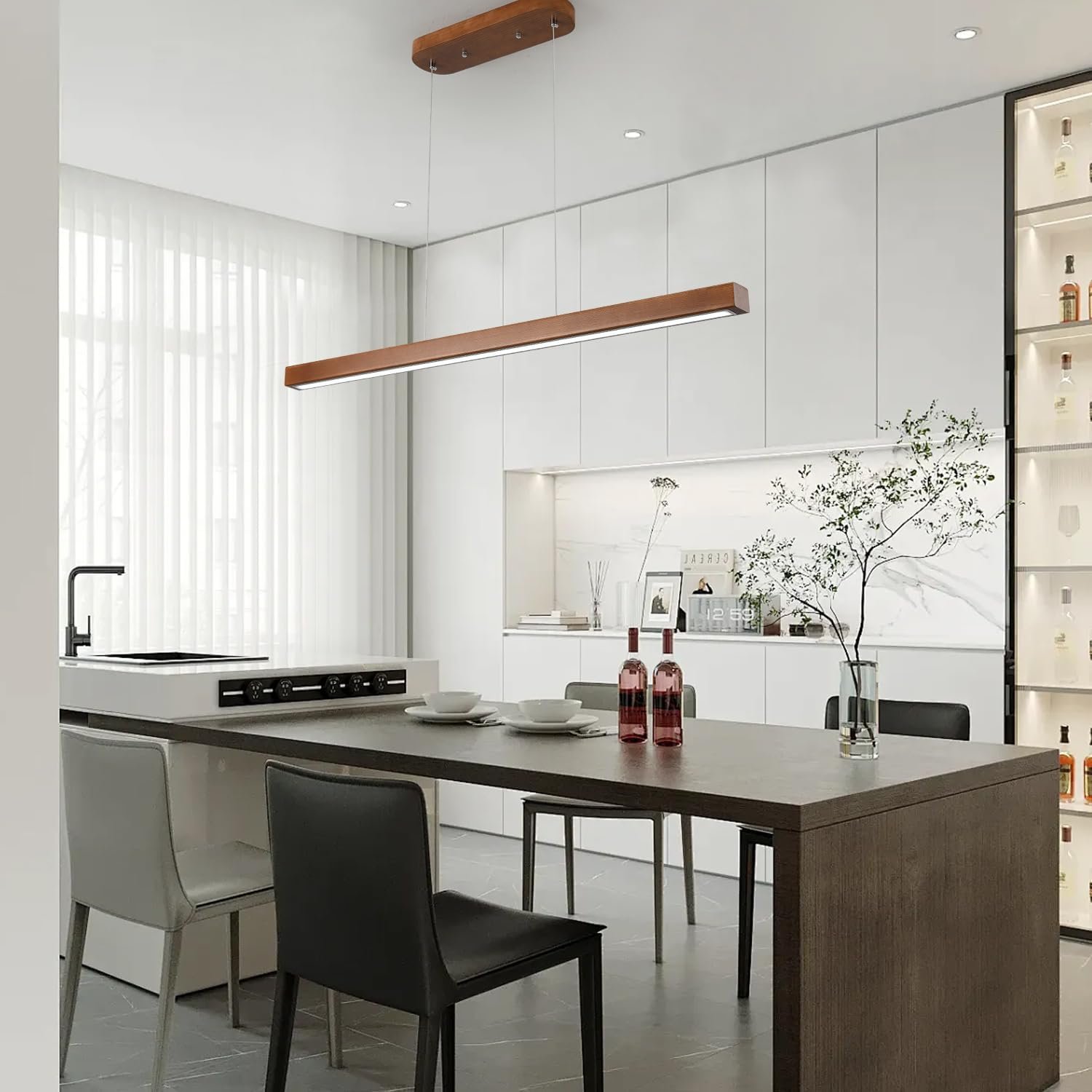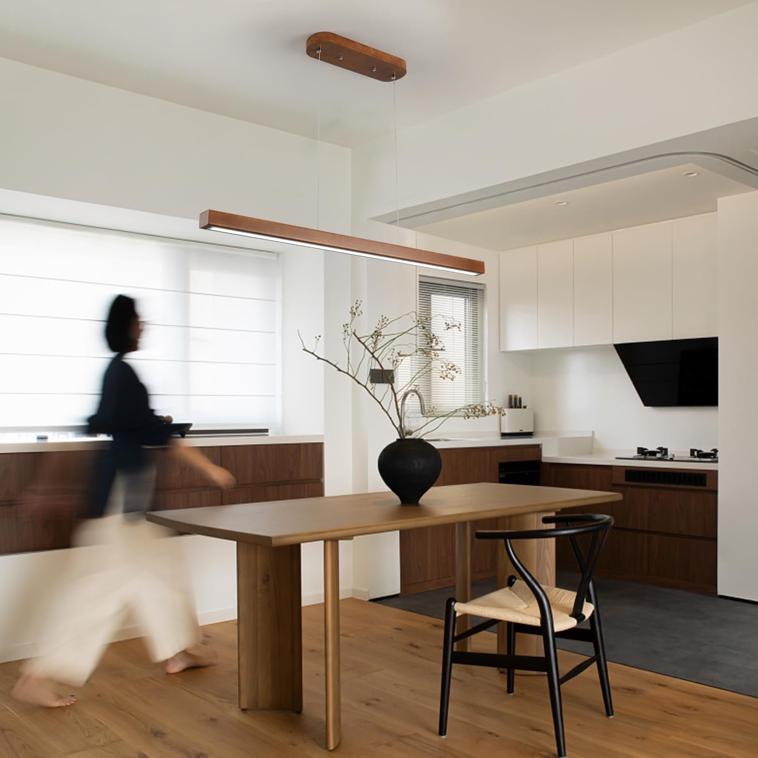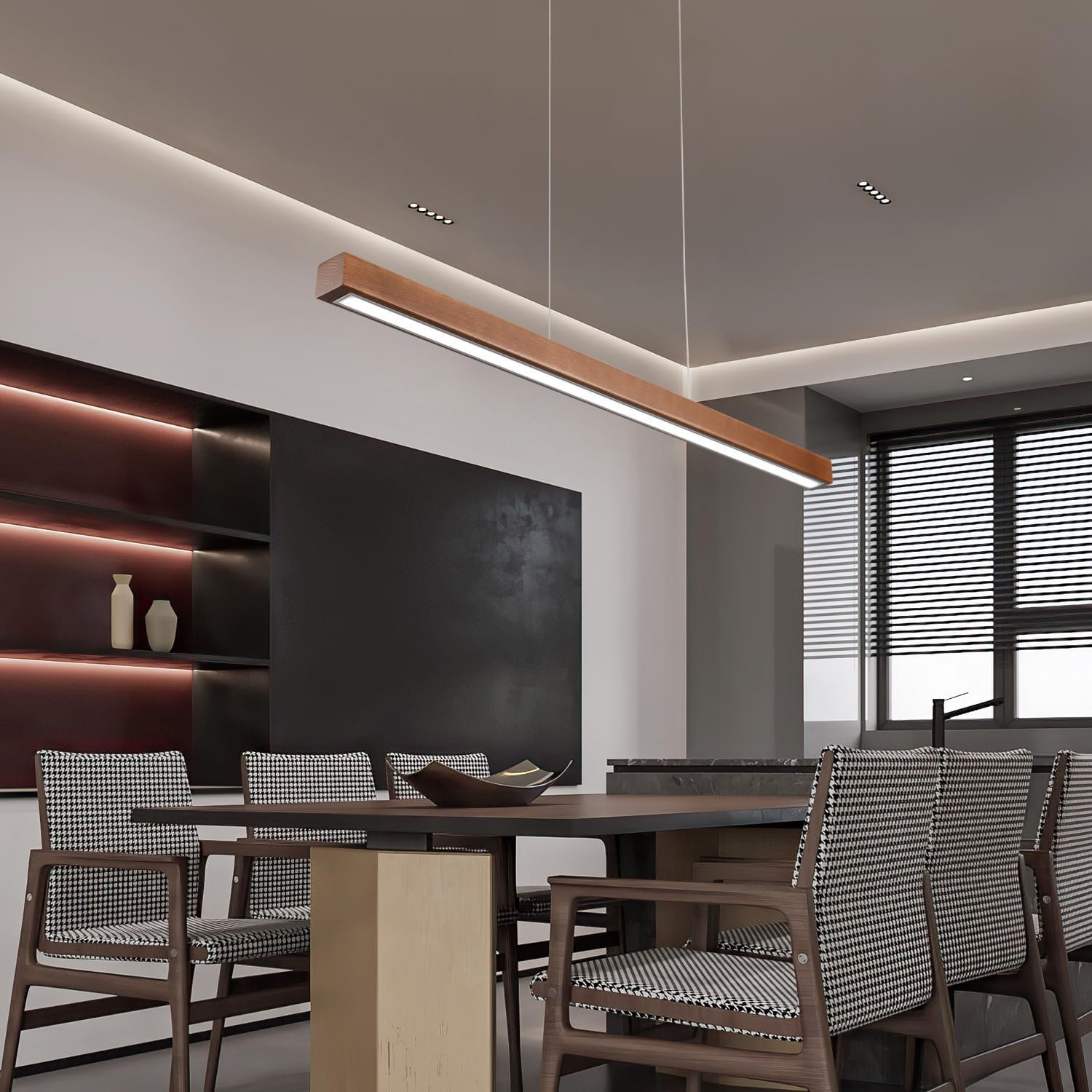 【31.5 inches Linear Pendant Light】The real wood finishes and dramatic presence of LED light elevate your environment symmetrically and stylishly above elements like a dining table or kitchen island.This sleek design illuminating the space with a single long rail powered with state of the art LED technology. The rest of the piece is kept simple, hung with cables from a matching rectangular canopy.Making your cooking and dining experiences more intimate with upscale lighting from the 31.5″ Linear LED Pendant.