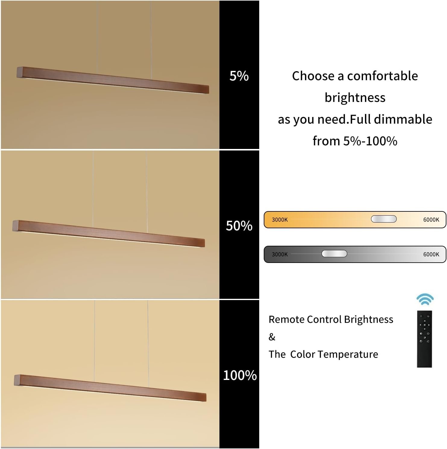 【High-quality Linear Pendant】This highly modern suspension piece is available in a walnut color finish and is fully dimmable to create the desired ambiance in any space saving you both time and money.Generations of design trends are more forgiving of clean proportions than ornate decorations, but good lighting design is always a welcome constant.This square chandelier for the discerning minimalist. it is a practical high brightness energy saving dimmable chandelier. later period does not have the worry that maintains, need not clean, make life more convenient.