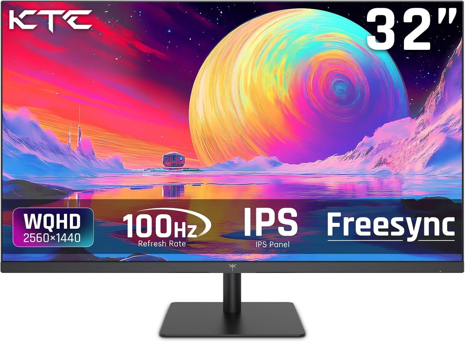 32 Inch 2K Computer Monitor, IPS 1440p Monitor with Ultra-Thin Bezels, HDR10, Freesync/G-sync, HDMI/DP Ports, Tilt Adjustable, Eyecare, Ideal for Business, Office, and Casual Gaming