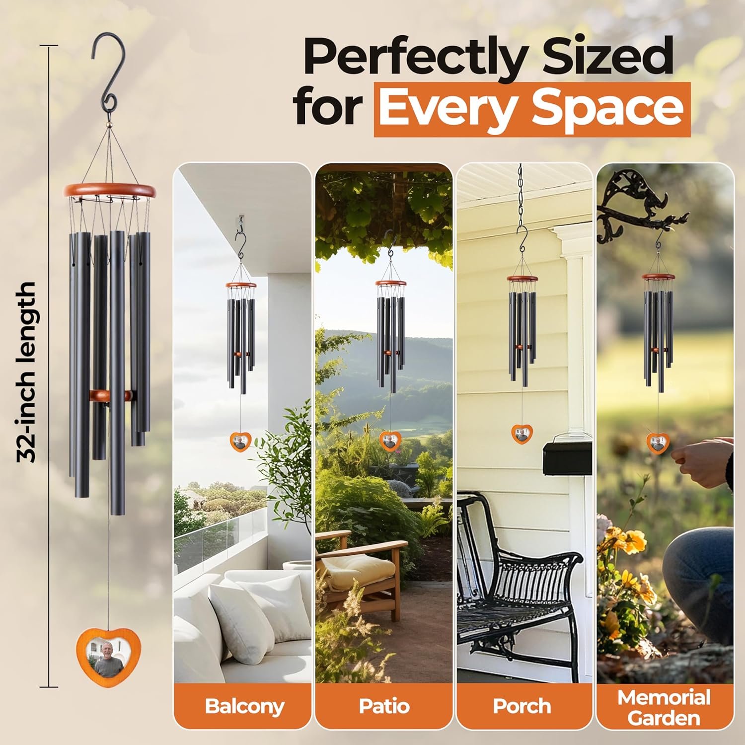 Personalized Memorial: Features an optional photo frame to hold at least 3 x 3 Inch photo of your loved one, making it a touching Funeral gifts for loss of dad, husband, or any loved one. Perfect for displaying cherished memories with windchimes.