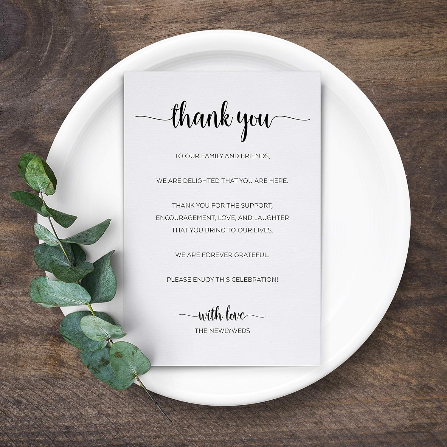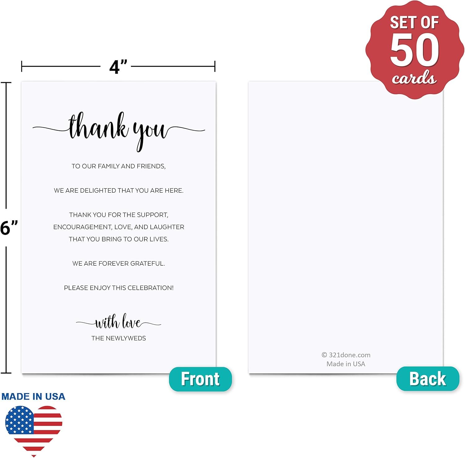 321Done Thank You Placecards for Wedding (Set of 50) Large 4″ x 6″ Table Place Setting Cards – Made in USA – Elegant Black and White – Minimalist Script