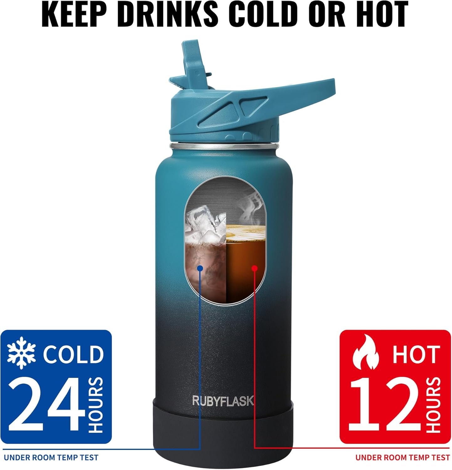 Easy to carry and comfortable, large capacity make the 32 oz insulated water bottle perfect for hikes, bike rides, camping trips, the gym or work. Anytime and anywhere maintaining good hydration