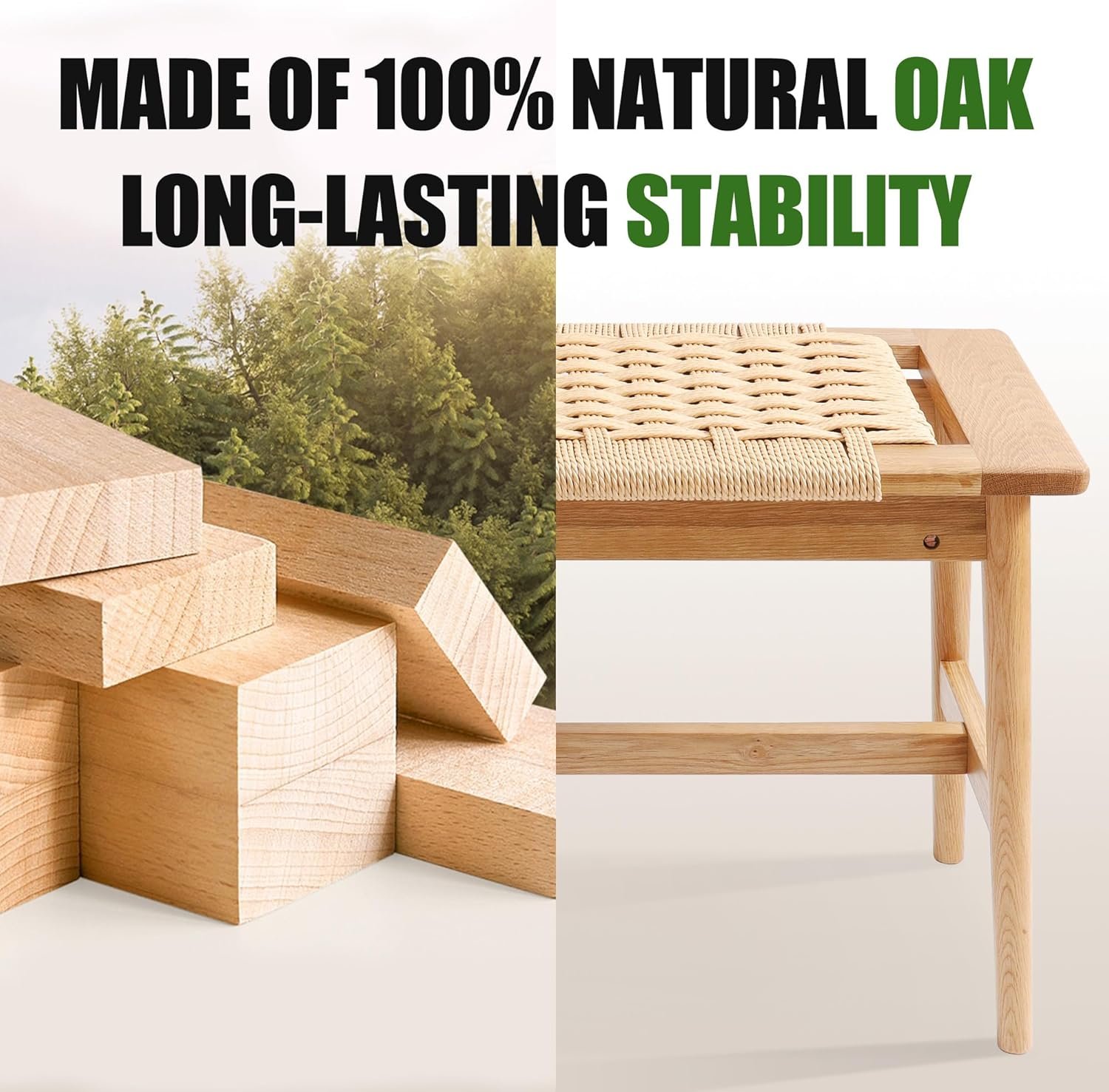 Modern Boho Style: The OGMILL woven bench brings a modern boho vibe to your home decor. Its combination of wooden legs and handwoven seat adds a chic, rustic touch, making it a stylish addition to any bedroom, dining room, or entryway.