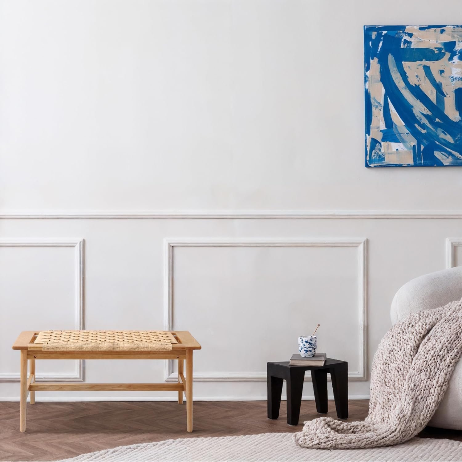 Comfortable & Safe Design: The bench’s smooth, rounded edges and sturdy design enhance safety, making it an ideal choice for homes with children. The woven seat provides a breathable, comfortable place to sit while adding charm to any room.